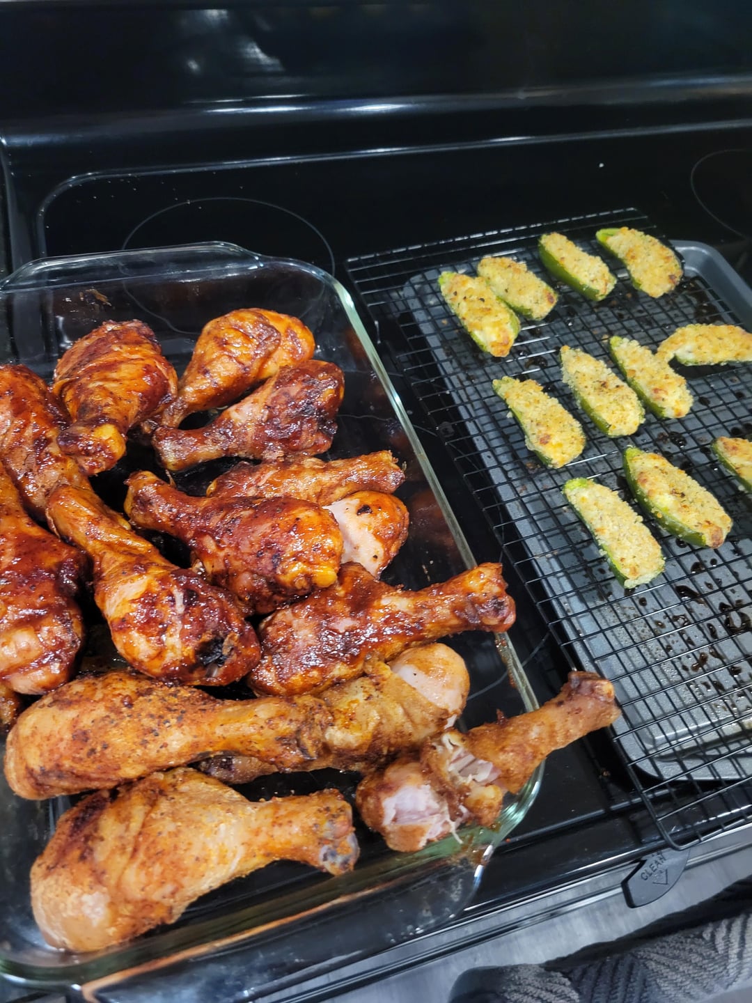 phenomenal on the treager… 300 about 1 hr 15 mins. split the batches with two different seasonings but did 1-2 tbsp of cornstarch to tighten the skin. around 170 I pulled and put bbq sauce on all but two from each rub. let set another 10 mins. nice and juicy.