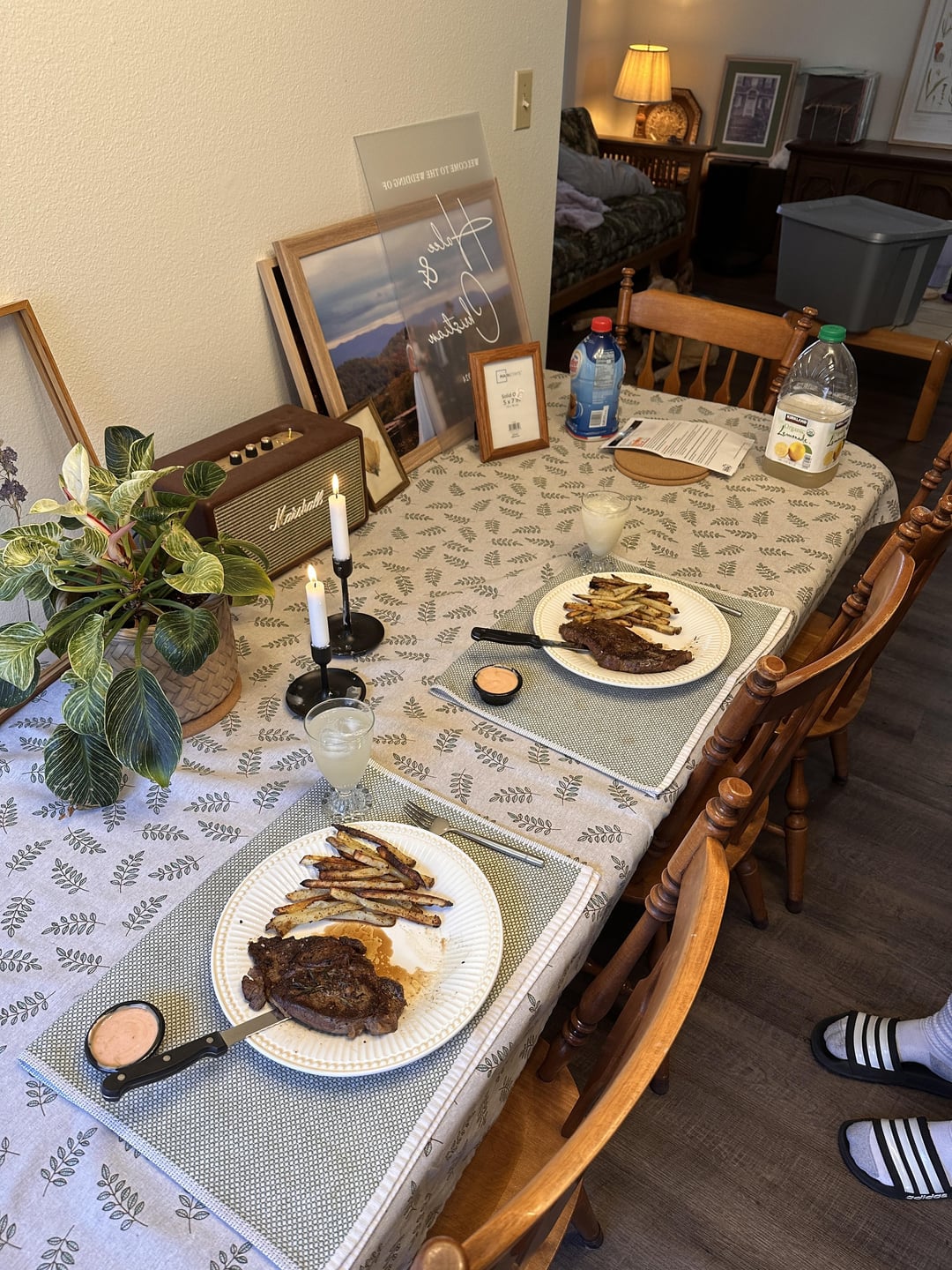 My wife and I have been on a tight budget since I started a company, and we can’t afford the usual rib eye, but the grocery store in town had 1.5 lbs of chuck eye for $18, so I decided to whip something up for our 6-month anniversary