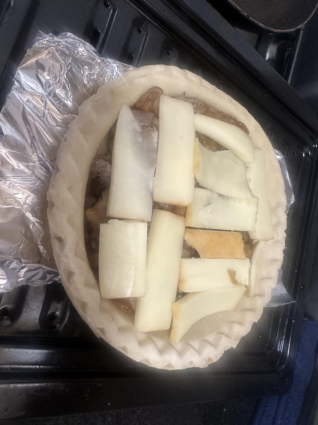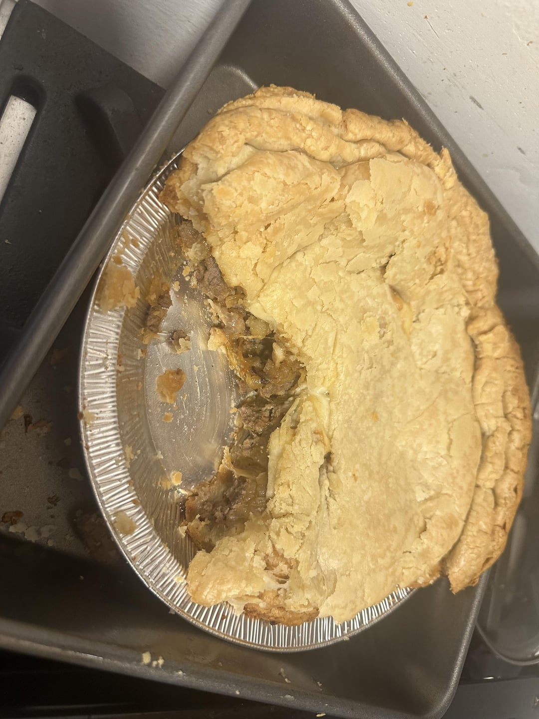 It’s a shepherds pie but top crust instead of mashed potatoes. I would call it onion beef pie if I were in Sweeney Todd times