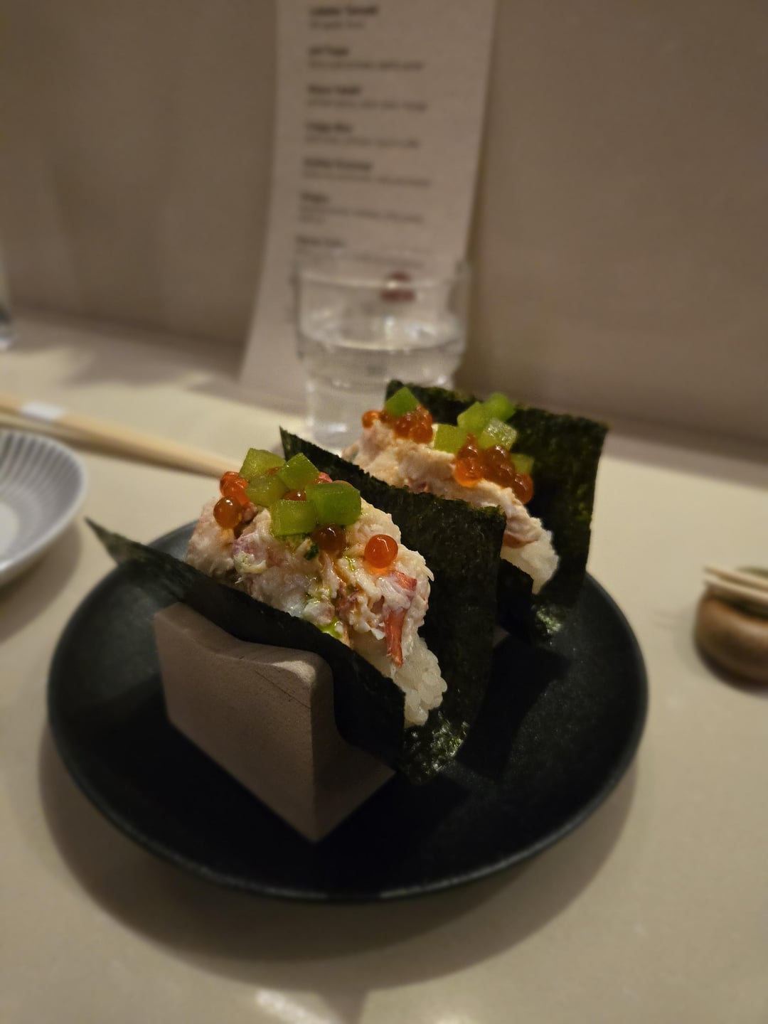 Lobster Temaki: The rice was the star here, perfect texture and I got a hint of cumin. The apple on top was crunchy and tart (I think it was pickled) and really brought it all together