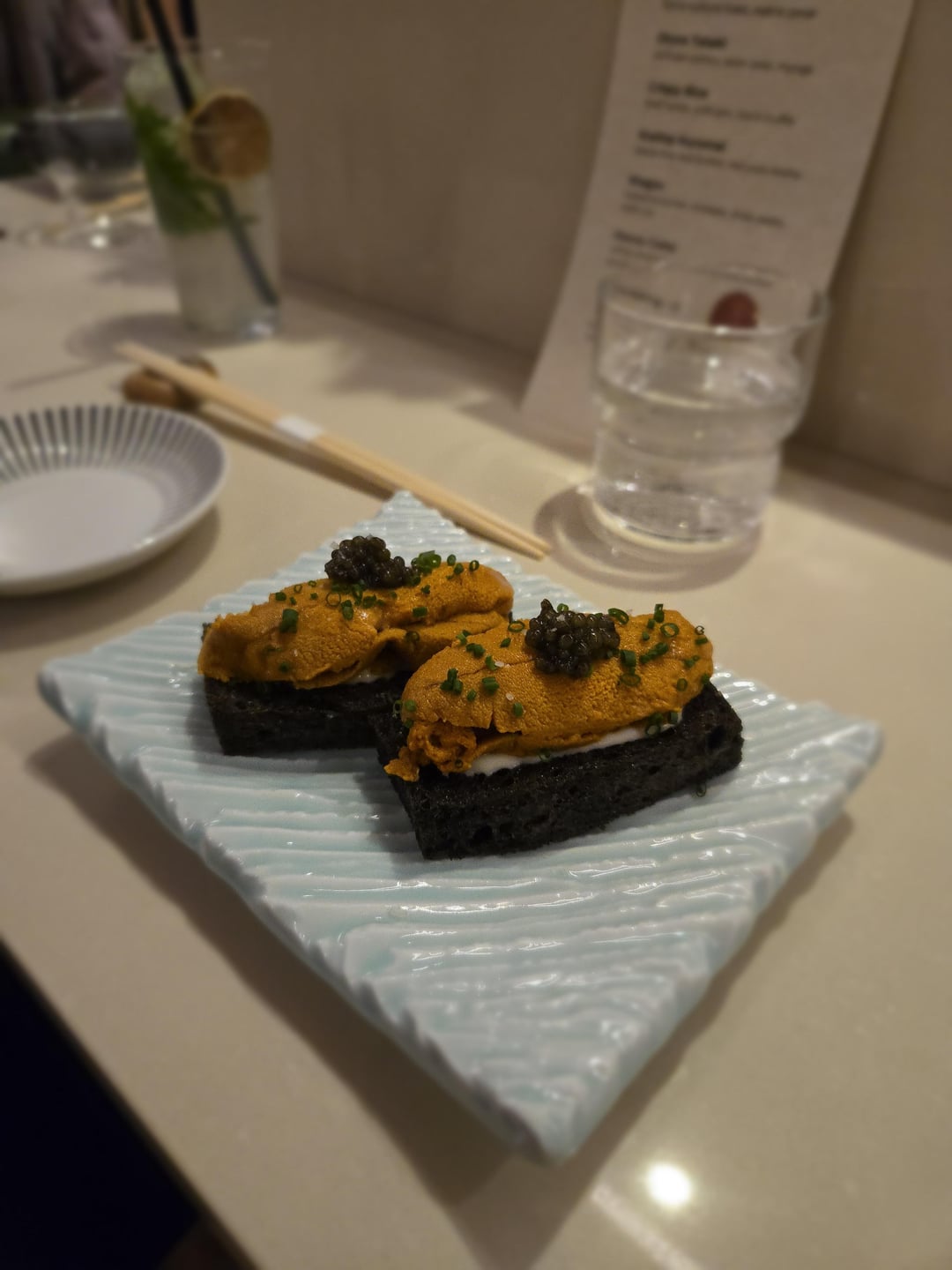 Uni Toast: The squid ink toast was mild in flavour and I don’t think it brought a lot to the dish. I thoroughly enjoyed this bite, but I felt that the chef added nothing to what was just some very fresh urchin.
