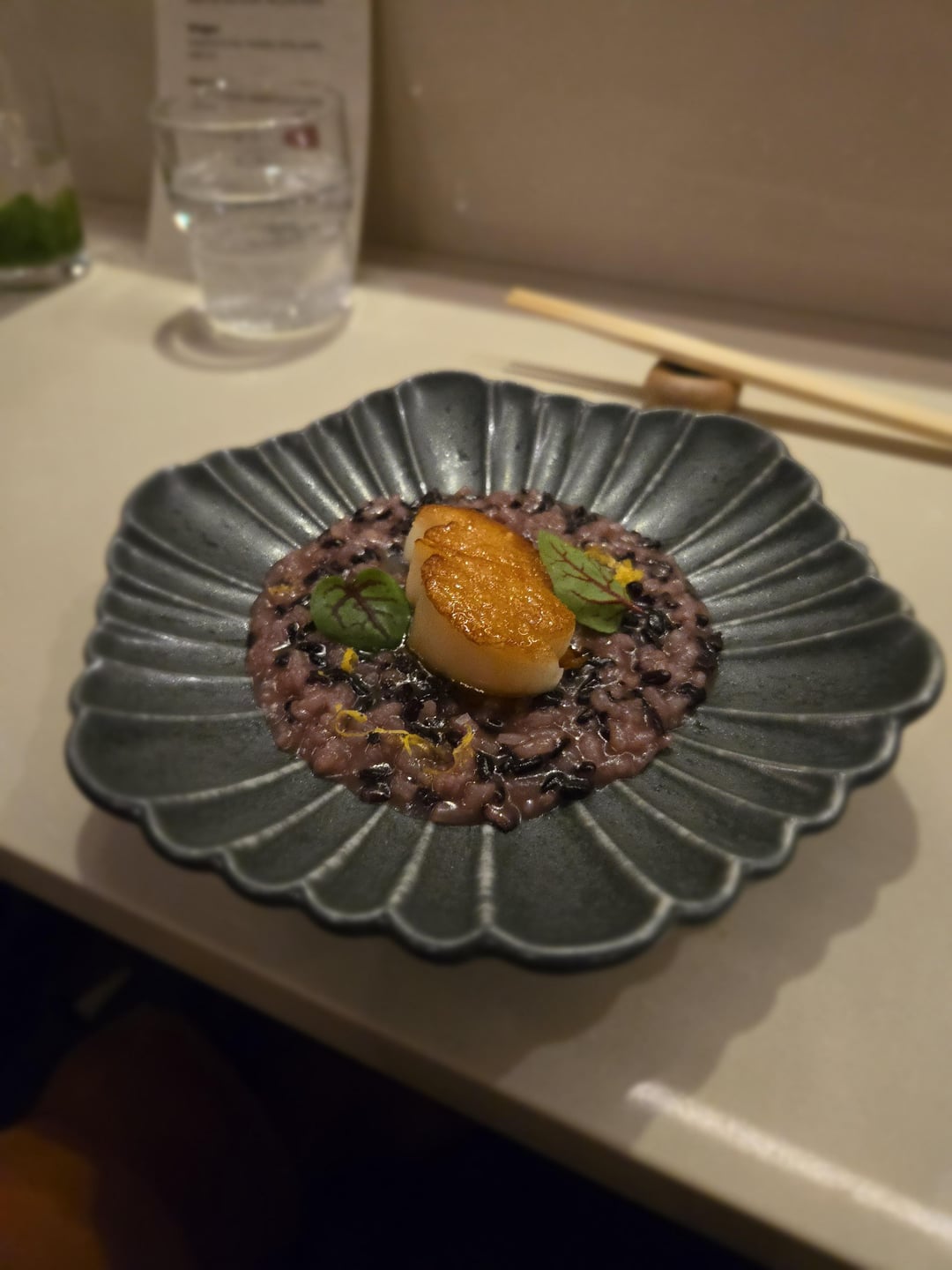 Scallop Kuromai: koji butter and kosho come together to make a rich, slightly smoky dish that feels like a Japanese risotto; I thought this was quite interesting and it was definitely tasty, especially with a dash of chili oil on top of the scallops