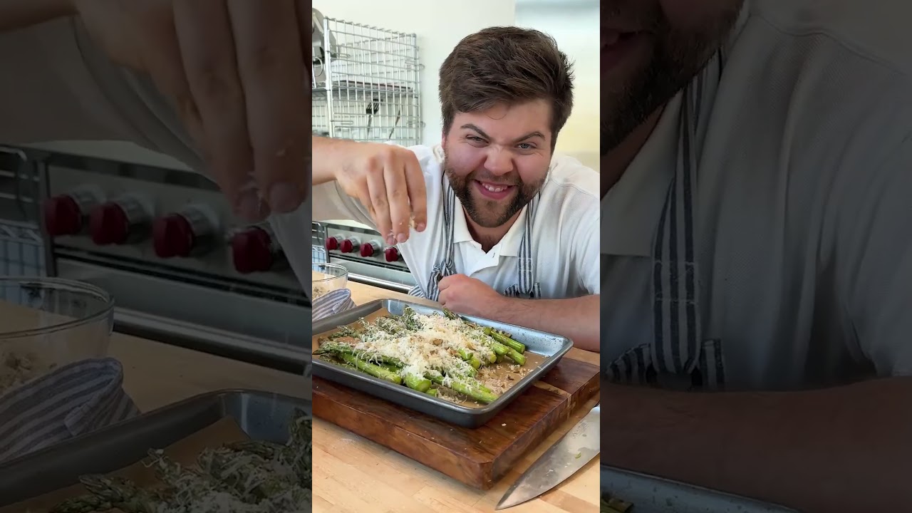 April is peak asparagus season, so you want to make sure you’re enjoying these while you can. Here, I’m keeping the flavors simple with garlic, parmesan, crunchy panko, and walnuts. But no matter the flavors, the secret is don’t be afraid of high heat and working fast. If you roast this at 425 for just 15 minutes, your asparagus will get golden brown, become tender, crisp, and soak in that garlicky cheesy goodness. Oh my god.