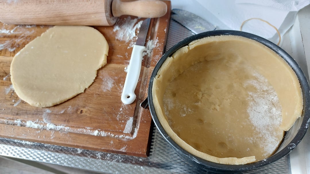 * Custard powder, or bread crumbs (VERY, VERY, VERY important for keeping the pie dry. Custard powder is tastier though)