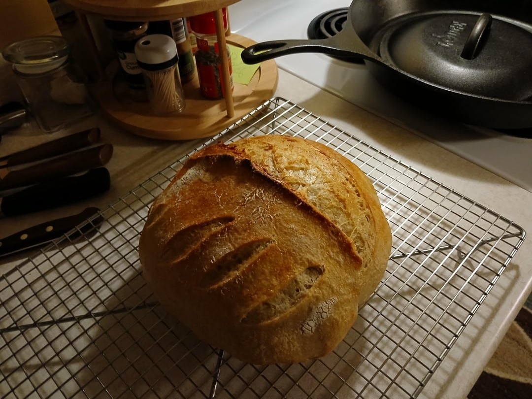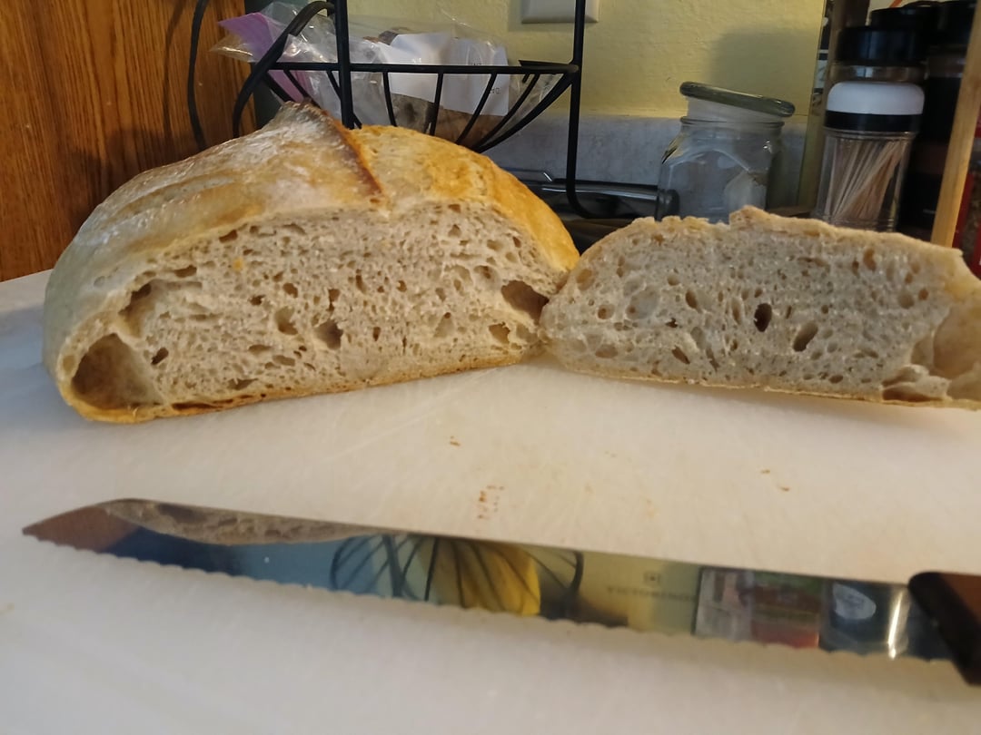 I changed a couple things with this one. This time I added the starter and salt to the water and then the flour and mixed it up and autolysed for an hour afterwards. All the rest was as directed. 🤘
