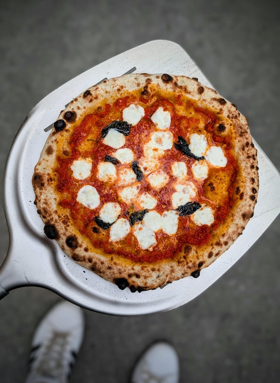 Lovely pizza!! If I may be so bold: imho it would look even better without the semolina. Regardless – long fermentation all the way!