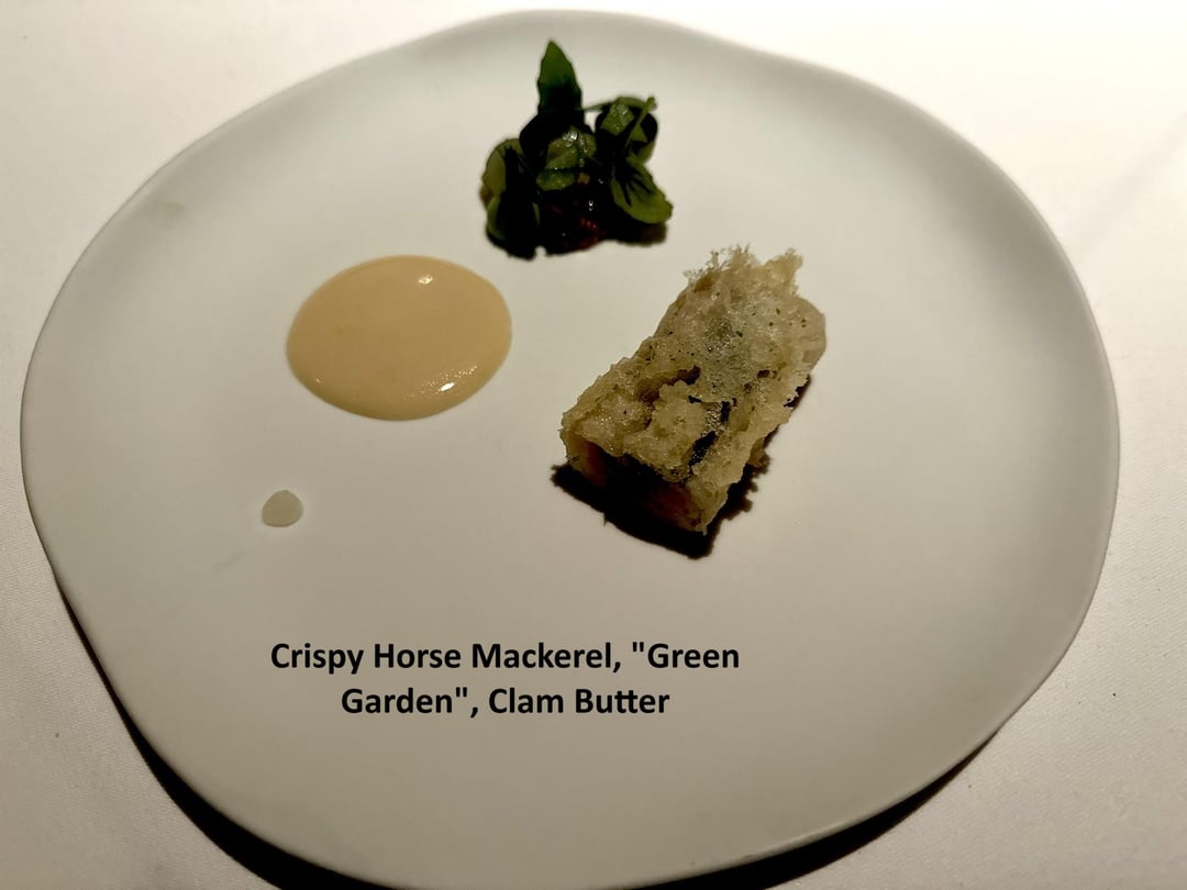 4) Crispy horse mackerel, green garden, clam butter – another stellar entrée featuring my favorite fish. Mackerel with the perfect tempura like texture that did not feel greasy in the slightest accompanied by two very different sauces – one more herbal and vegetal, the other intensely rich of clams, but both working perfectly well with the fried fish. A little dollop of lemon on the side of the plate adds some fresh acidity to each bite.