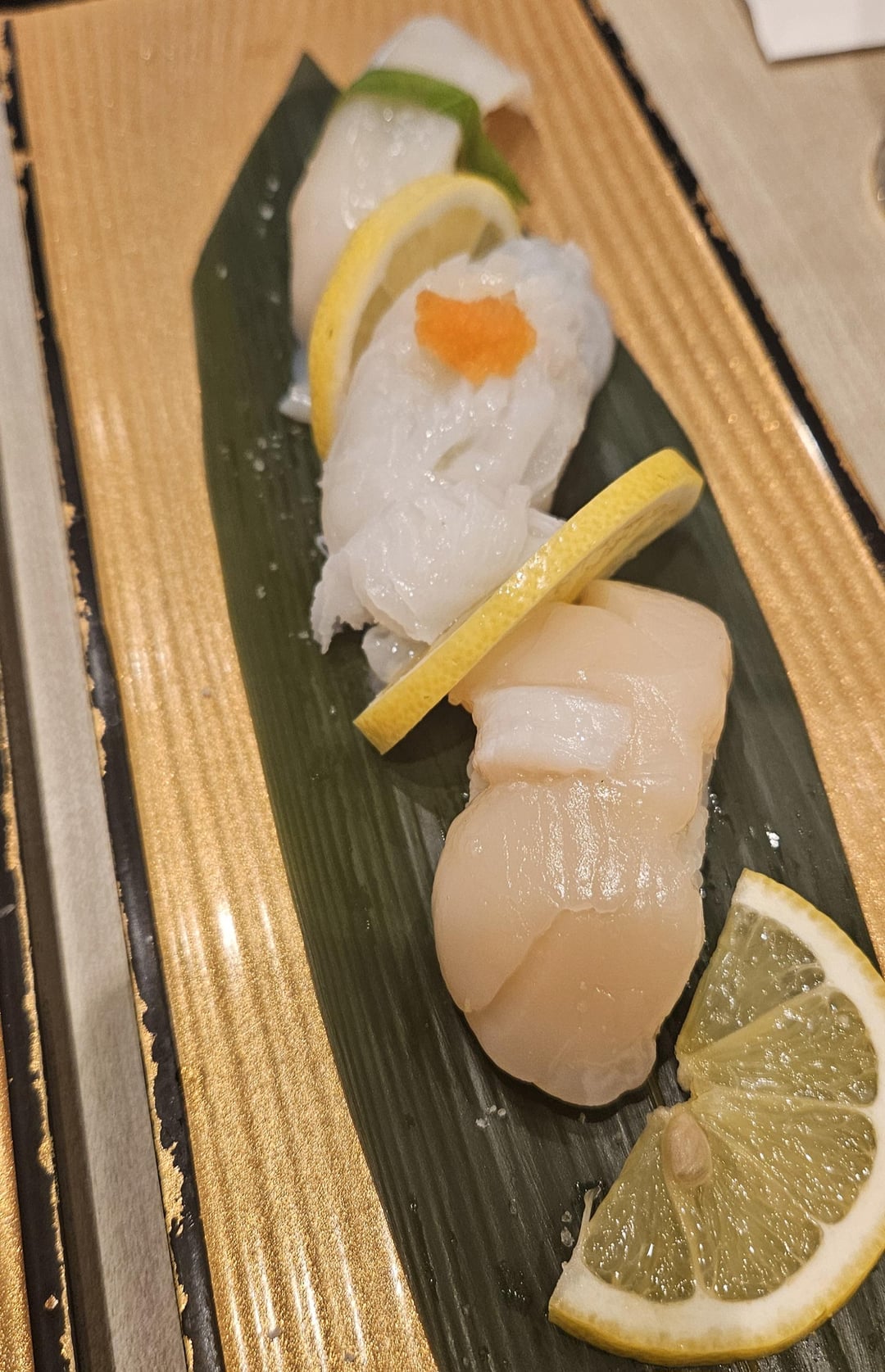 looks good. what’s in photo 2 in the plate on the right? Long piece of something w/ikura on top.