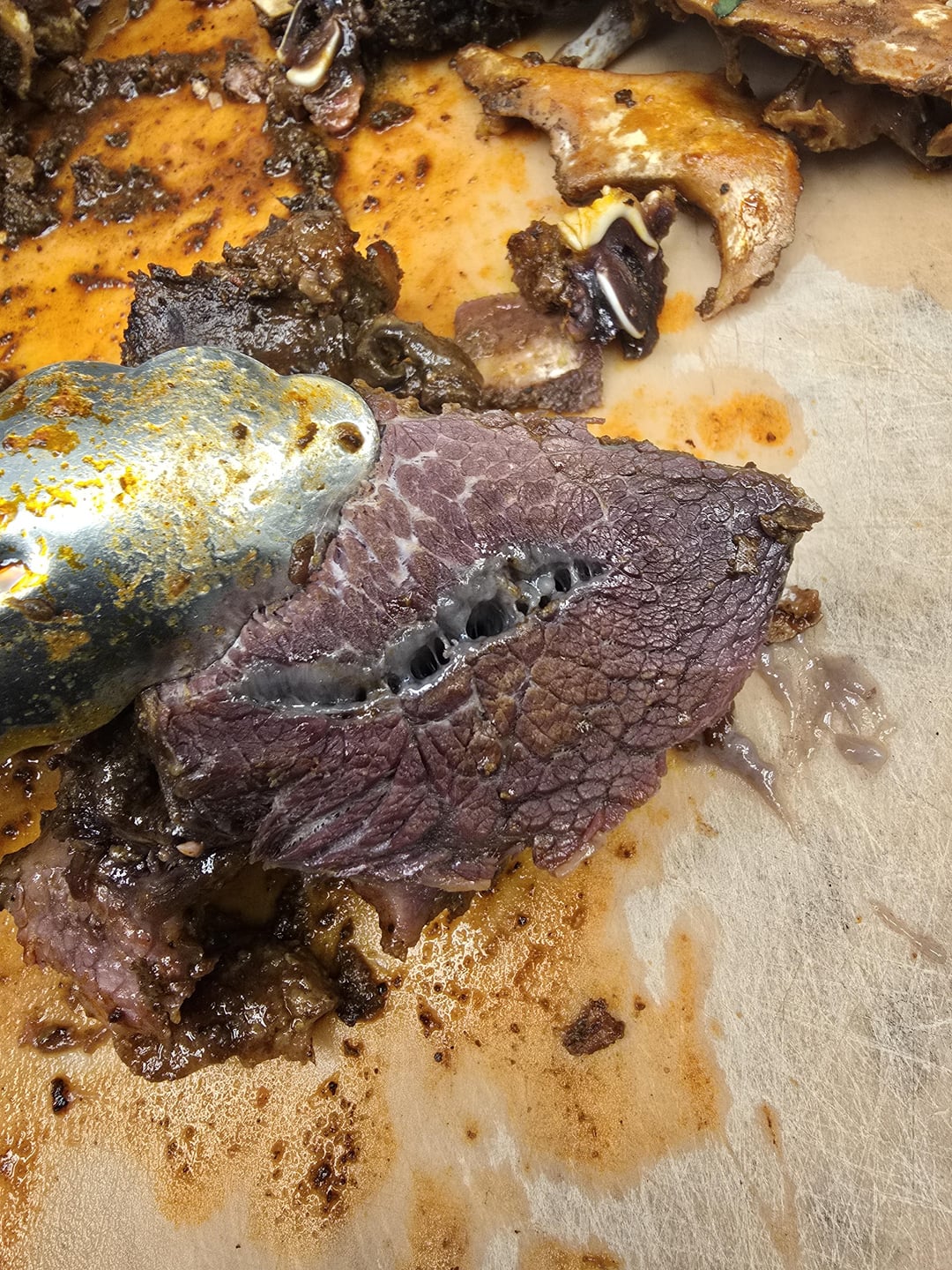 Cooked up this bear cheek and there's some kinda goo coming from the middle of the meat. What is it and is it safe to eat?by g-raf211 11 Comments chapstickdick 11 months ago I’d be willing to bet that it’s completed melted collagen/fat Frosty_Permission_88 11 months ago Did you bust on that piece of meat? BuuMonster 11 months ago is it gamey? Mursemannostehoscope 11 months ago Fat or collagen, same with beef cheek. CarefulBid6485 11 months ago Where does one who doesn’t hunt get bear Buzz_Osborne 11 months ago Marshmallow Cheeky Cheesecake AHiredGunmanXbox 11 months ago Nope jtcordell2188 11 months ago Depends how long did you freeze the meat for? Bear meat is known for having trichinosis if it’s undercooked Primary_Jellyfish327 11 months ago Is it not rendered fat? KeyPaleontologist540 11 months ago I don’t think I would eat bear even if I had to shoot one in self defense WiseSpunion 11 months ago Don’t eat… That is definitely not good fatWrite A CommentYou must be logged in to post a comment.