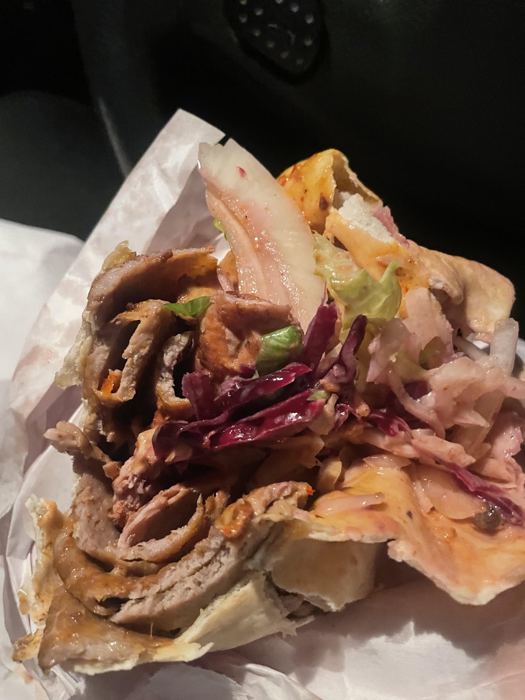 Boss man been there donkeys running it out of his van, always open late. These are massive, I’m a gusty pig and still struggle to eat the whole thing. All the salad with garlic mayo and chilli sauce. Apologies for poor pictures I was in ecstasy whilst eating it and paused for a break midway through for a swig of Rio when I thought to take these.