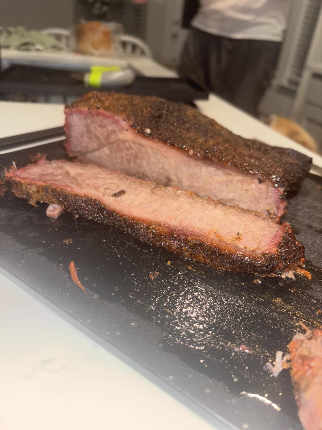 I used mustard as a binder, applied brisket magic liberally, left it in the fridge to dry brine overnight. I also injected it with tallow beforehand.