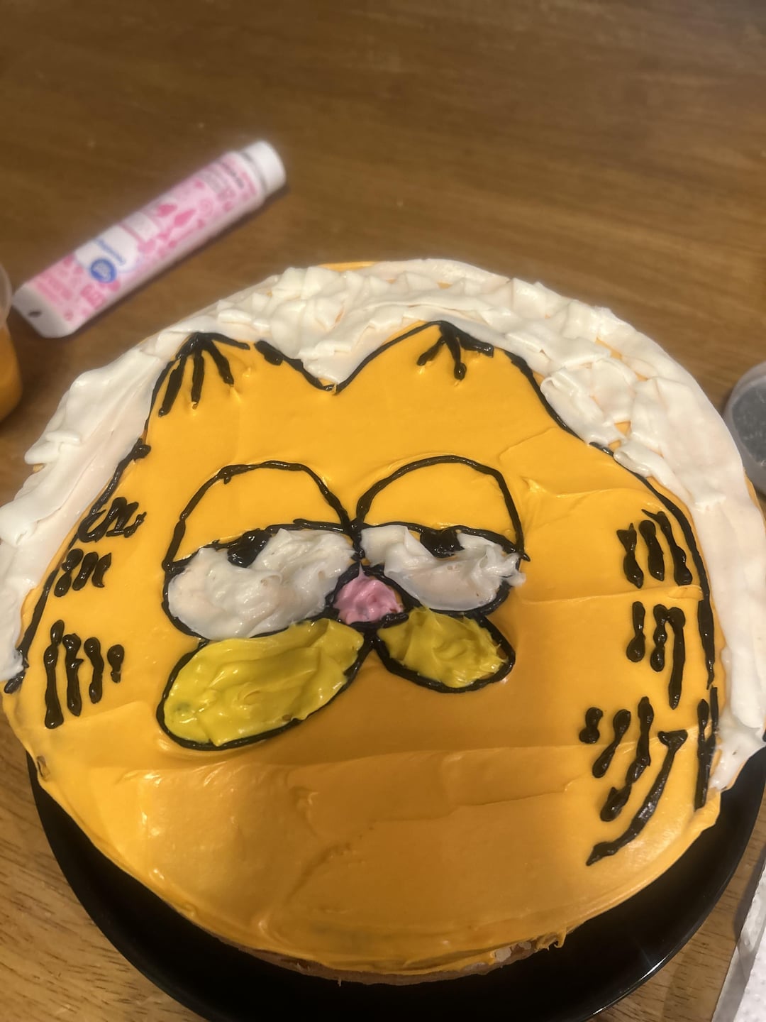 We used whatever we could find from Walmart by why_is_th1s_s0_hard 13 Comments OrangeDutchbag 9 months ago Garfield!! Looks great you guys! And you got to hang out with your mom which is always cool! Sea-Two6135 9 months ago His face is purrfection- just no fcks given Duckwarden 9 months ago I love his face! myfrontallobe10 9 months ago so cute i love it! great work Such-Wonder-2864 9 months ago I love it! Please tell me you and your mom or whole family are having it with lasagna Survive-or-thrive 9 months ago Garfield!!!! Yessss!!! Love this and the time spent with Mom making it!! It is purrfection!! ๐ Suspicious-Sweet586 9 months ago looks amazing..i love Garfield…well done artie_pdx 9 months ago Mondaysโฆ am I right?Nice job! Ruining_Ur_Synths 9 months ago its beautiful. You’ve actually captured Garfield’s soul in this cake, and now you can devour it. TLW369 9 months ago ๐ฅฐ๐ quietadventurer 9 months ago Garfield would totally approve. femdom_ne 9 months ago I love cats even more Garfield ๐ This is beautiful, my mom loved it! Routine-Fig-3855 9 months ago Walmart: the BEST for baking essentialsWrite A CommentYou must be logged in to post a comment.