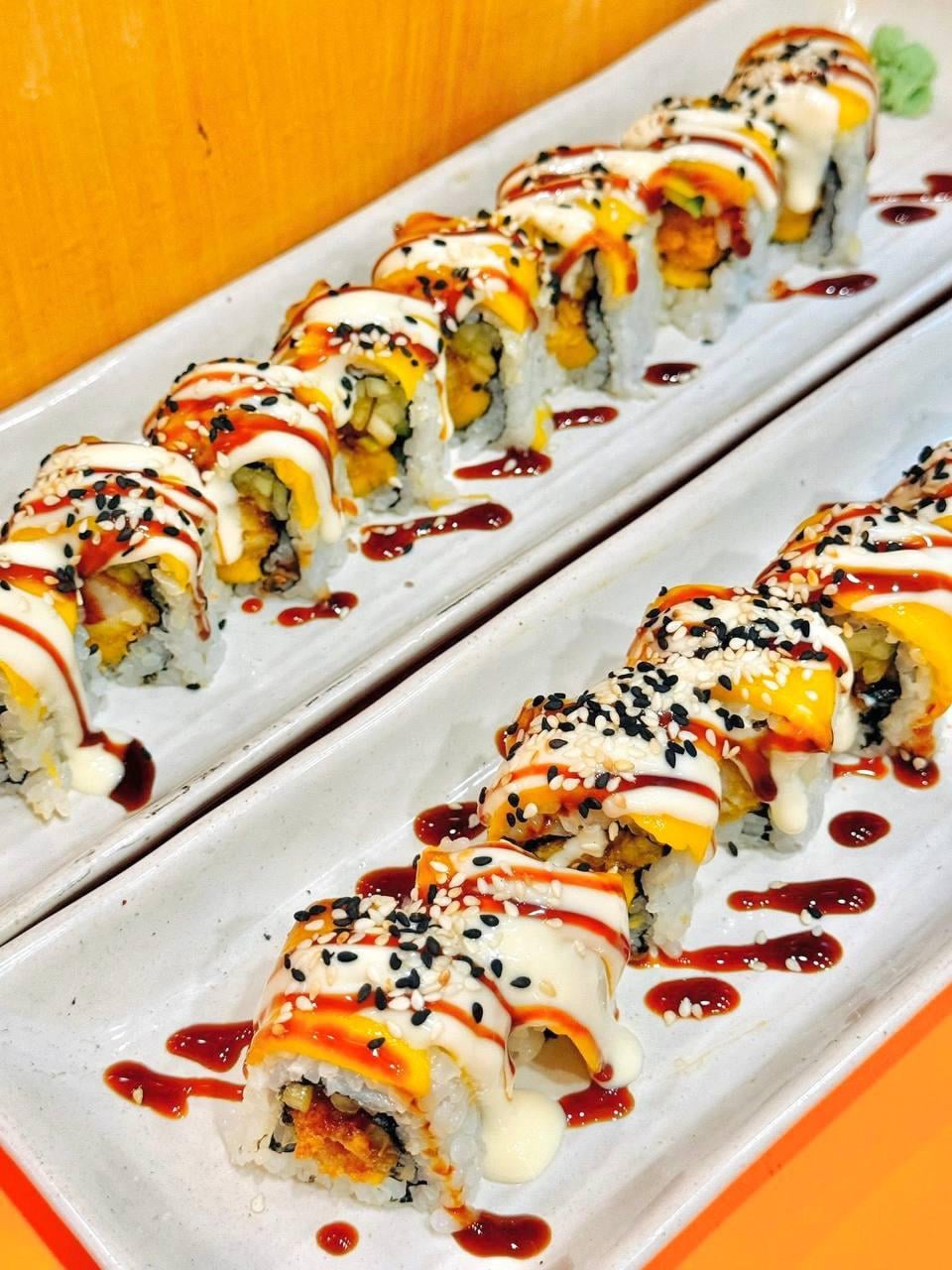 My friends and I were seriously craving sushi the other day, so I decided to whip up some of my favorite comfort food right at home. I’m definitely not a professional, but I love experimenting and perfecting my sushi game whenever I get the chance. My best 3 : Yellow Dragon Maki , Salmon Aburi Maki, Cheesy Tori Age Maki
