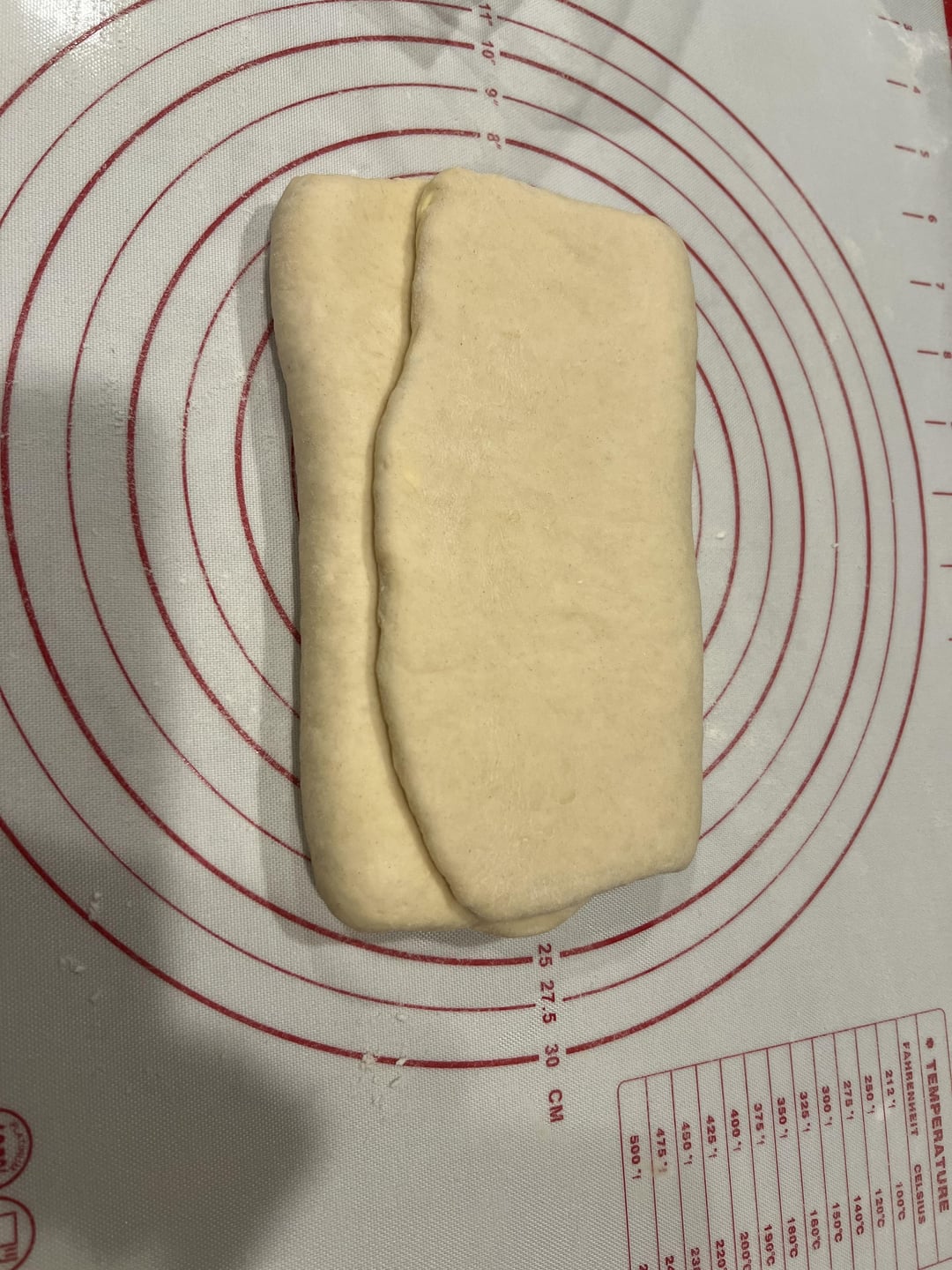 A bunch of tiny dough things from when I trimmed the final rectangle.