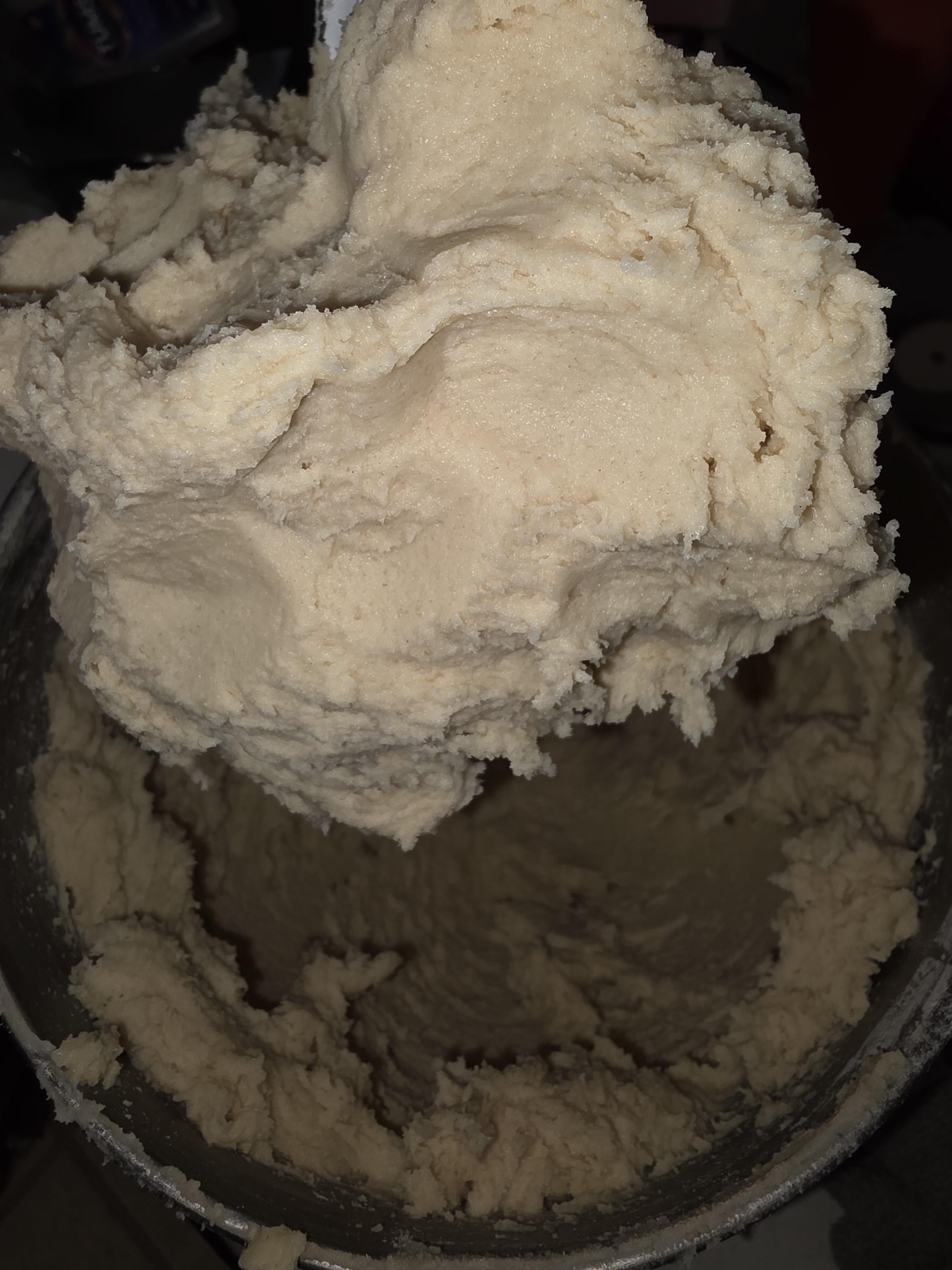 Hey guys! I'm making some regular sugar cookies (they're more shortbread type) and before I started I measured out my flour because I knew I was cutting it close (didn't want to start if I needed to get more, obviously)… My dough is not fully clumping around my paddle attachment like it normally does… I've made this recipe a million times and this has never happened. I added the tiny bit of flour I had left, because it's pretty humid today, but it's not clumping. Any suggestions to help? 😅