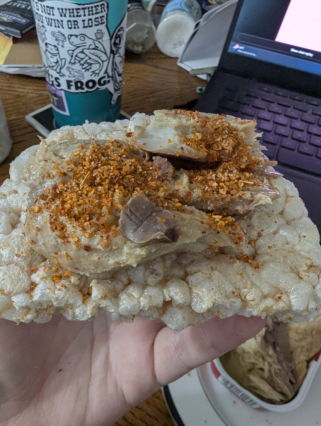 Had a can for lunch today. Chili crisp and Spanish Rice. The mackerel was mild tasting, and the chilli crisp jazzed it up nicely.