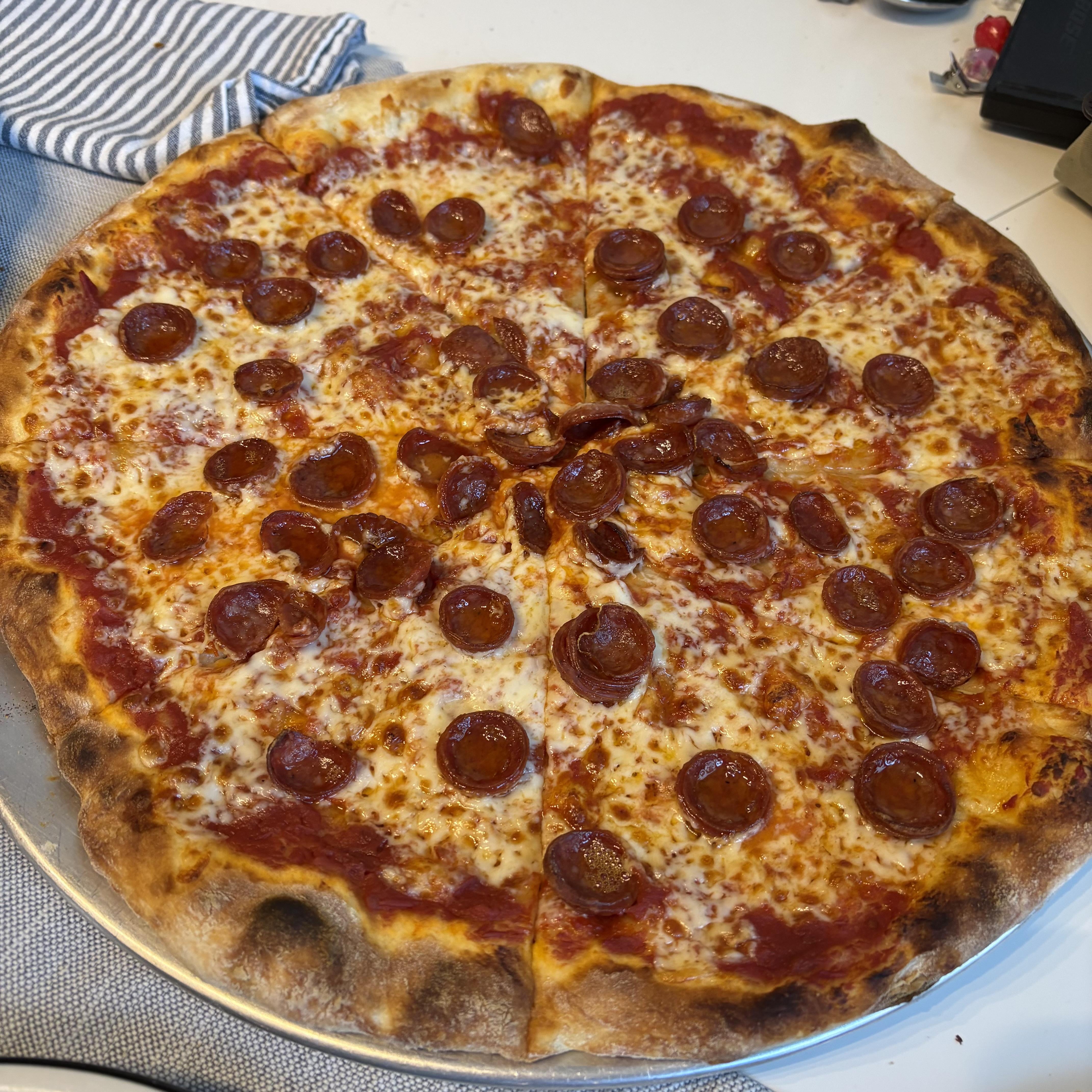 (Canadian) Ingredients are Hunt’s Early Harvest Heirloom Crushed Tomatoes, No Name mozzarella cheese, and (hand-sliced) Venetian Meats Cup and Char Pepperoni.