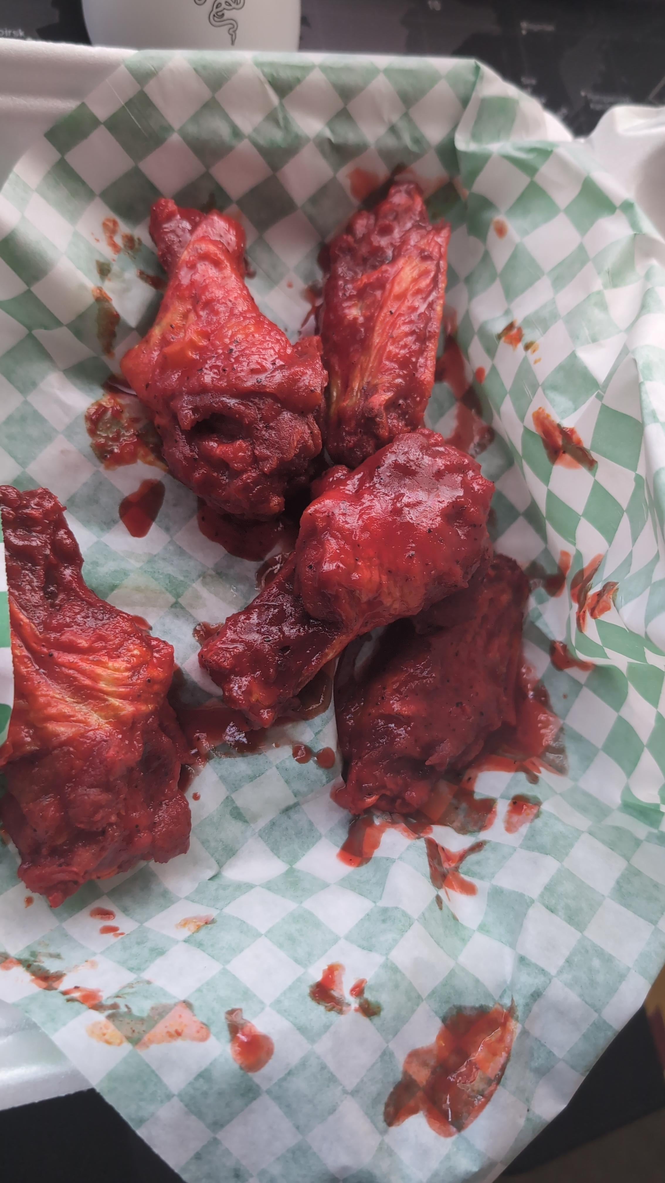 CHOCOLATE_HELLE 5 months ago If you aren’t slightly uncomfortable when eating wings you are doing it wrong.