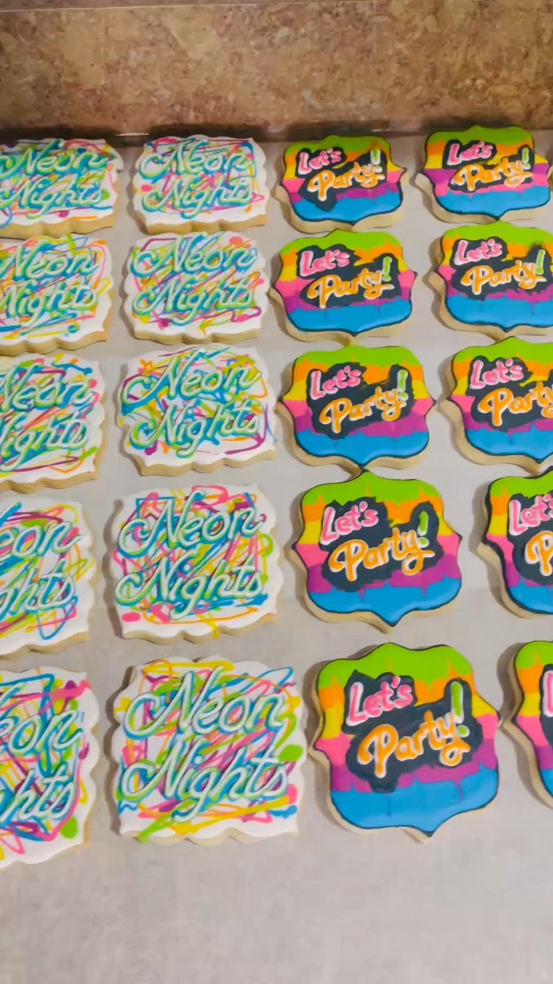Cookies I made for our local school dance (Neon-themed) 🤗. I need a hot shower and a nap 😴