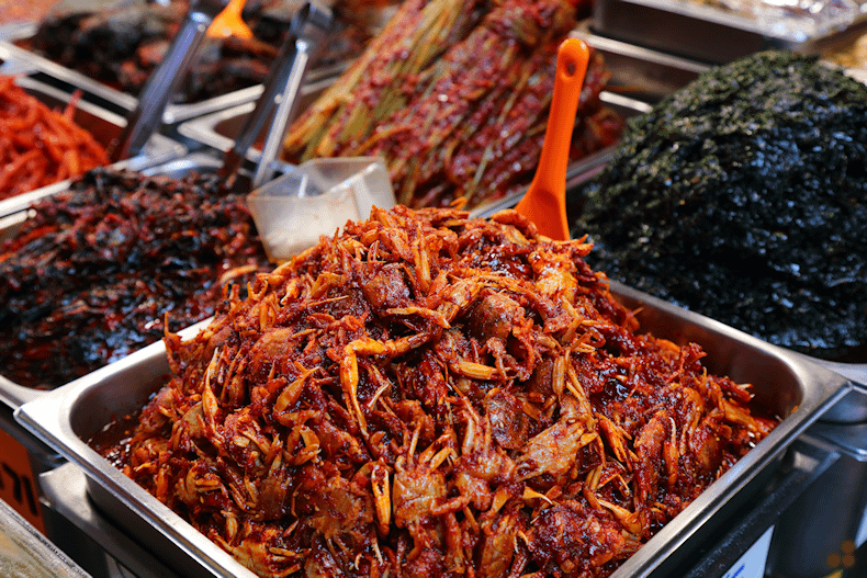 Small marinated whole crabs at a market. Is this Yangnyeom Gejang, or is it something else?