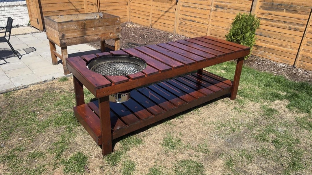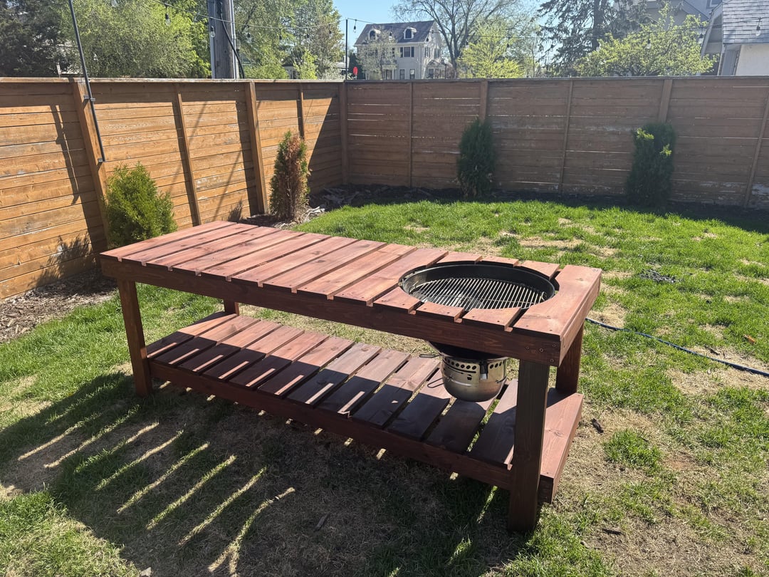 Finally finished the bbq table! by rippcw1234 9 Comments minesskiier 6 months ago Nice, Very Nice! Maleficent-Art-8321 6 months ago Very cool! How did you manage to hang the kettle in there? Itchy-Noise341 6 months ago Looks great! Im on about year 5 of mine now. Should have built one a LONG time ago.https://preview.redd.it/pur5b1mujsze1.jpeg?width=4032&format=pjpg&auto=webp&s=3325608c8c7efd0dde2e638055427f605699ff1e isvein 6 months ago Wish I had the skilles to do this 🫨 im_rapscallion86 6 months ago Not to be ignorant, can you help me understand how this isn’t a fire hazard? chuckleheadjoe 6 months ago Very cool. What stain did you use?Mine is about ready to be powerwashed and redone.Stain lasted about 4years. chuckleheadjoe 6 months ago Don’t know about his but mine has a one inch gap all the way around the kettle.Screwed down galvanized sheeting underneath. My front is closed in so no one notices. MozzieKiller 6 months ago It’s a beaut, Clark! Imaginary_Box2925 6 months ago Looks great! Im jealousWrite A CommentYou must be logged in to post a comment.