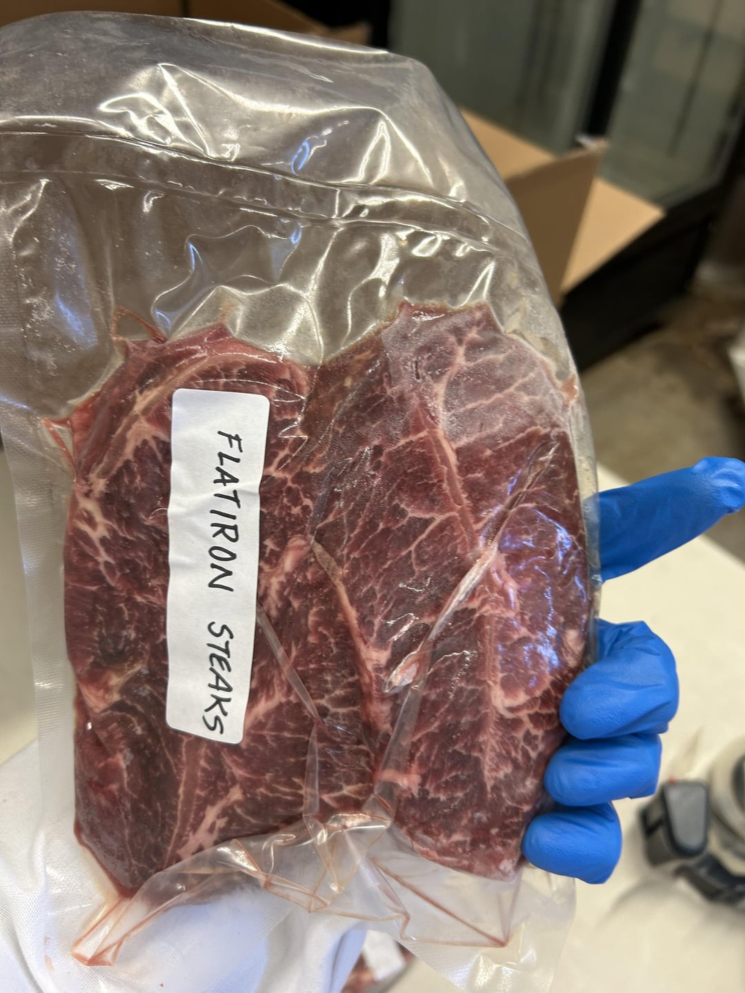 Looks good. But, technically the last picture you call flat irons are actually petite steaks. Flat iron is cut with the large gristle in the middle removed. At least that’s what we call them here.