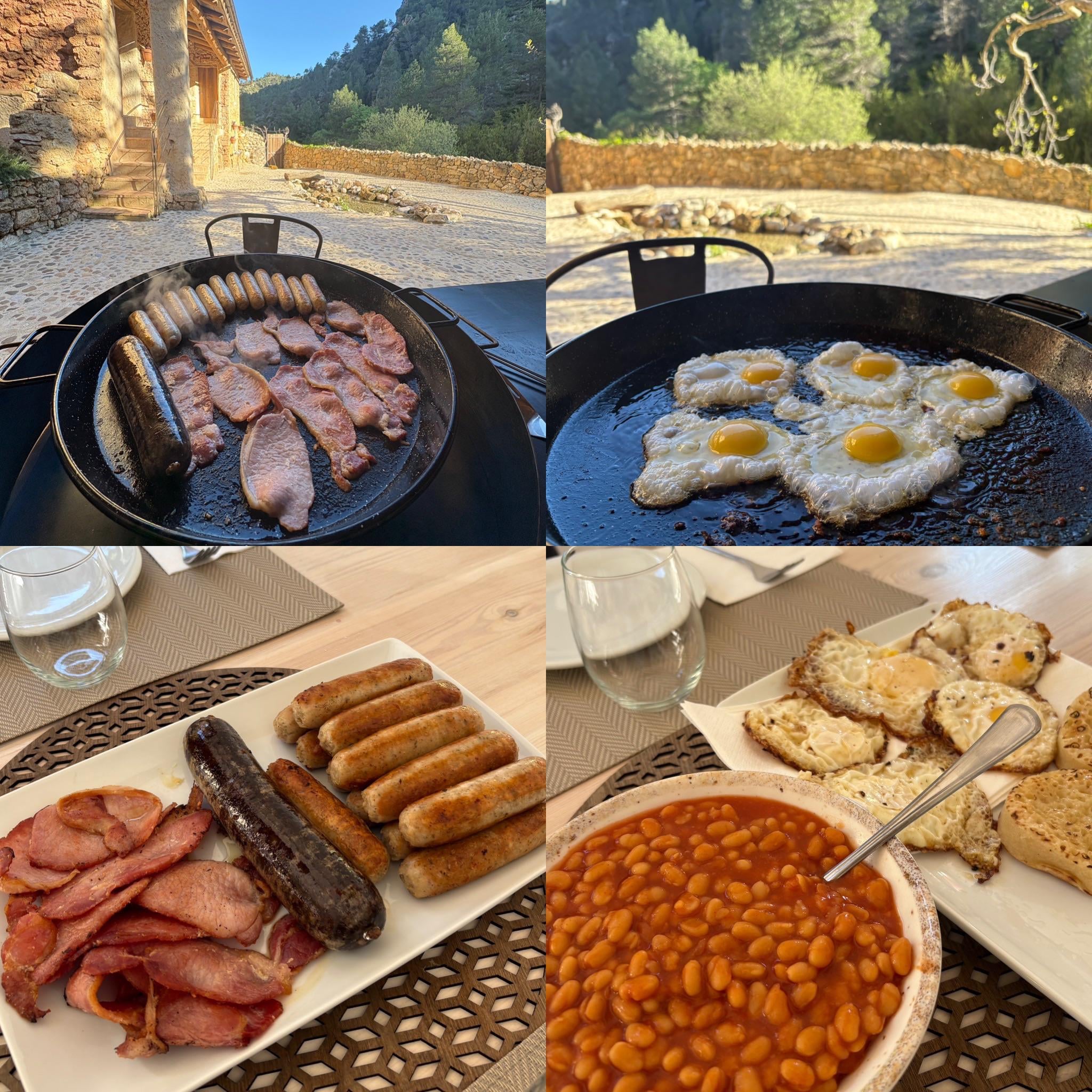 On holiday with the wife and the Spanish in-laws. All ingredients from Masymas supermarket. No hash browns to be found and couldn’t be bothered with tomatoes/mushrooms. I wanted to introduce them to crumpets so swapped the usual toast for those.