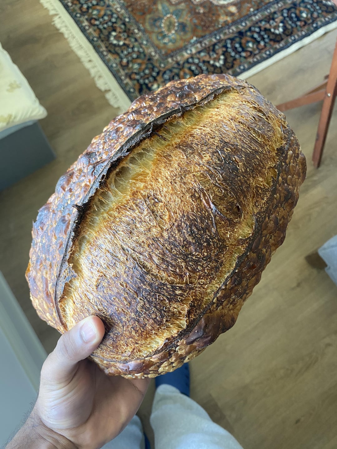 That’s one well-fermented dough! 4 hours final proof in room temp is crazy though! Goes to show we can only trust our doughs, not recipes and charts online.
