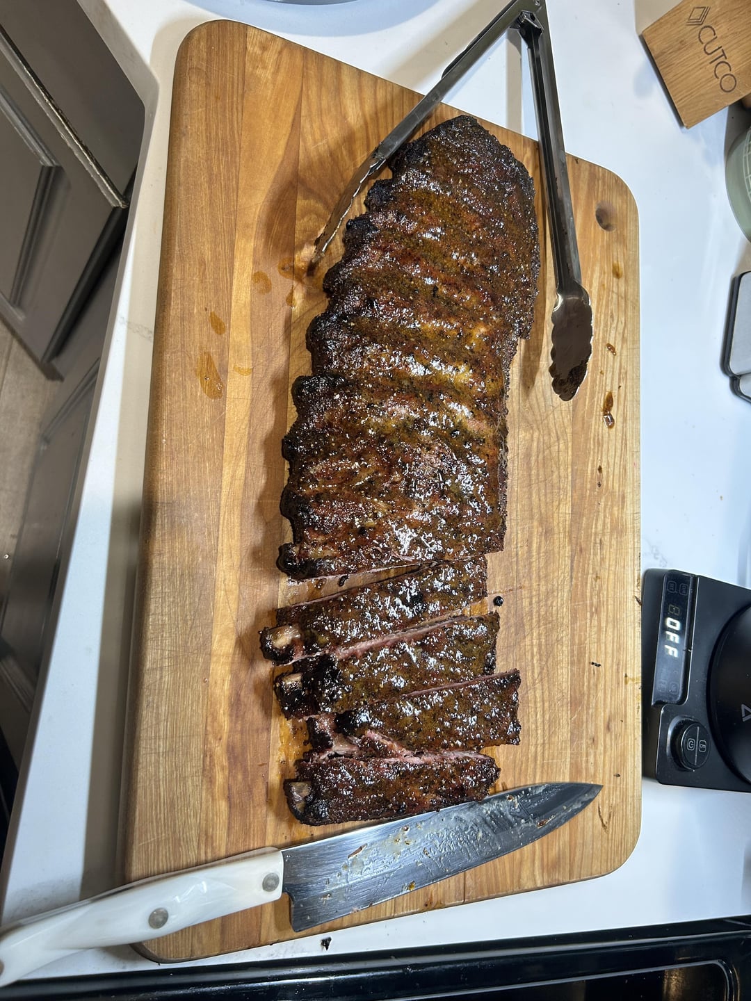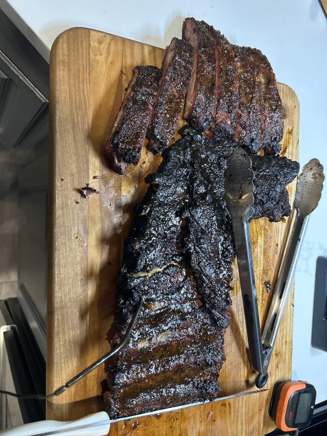 I haven’t done many racks of ribs but I’m pretty proud of these. I brushed them with salt lick bbq sauce.