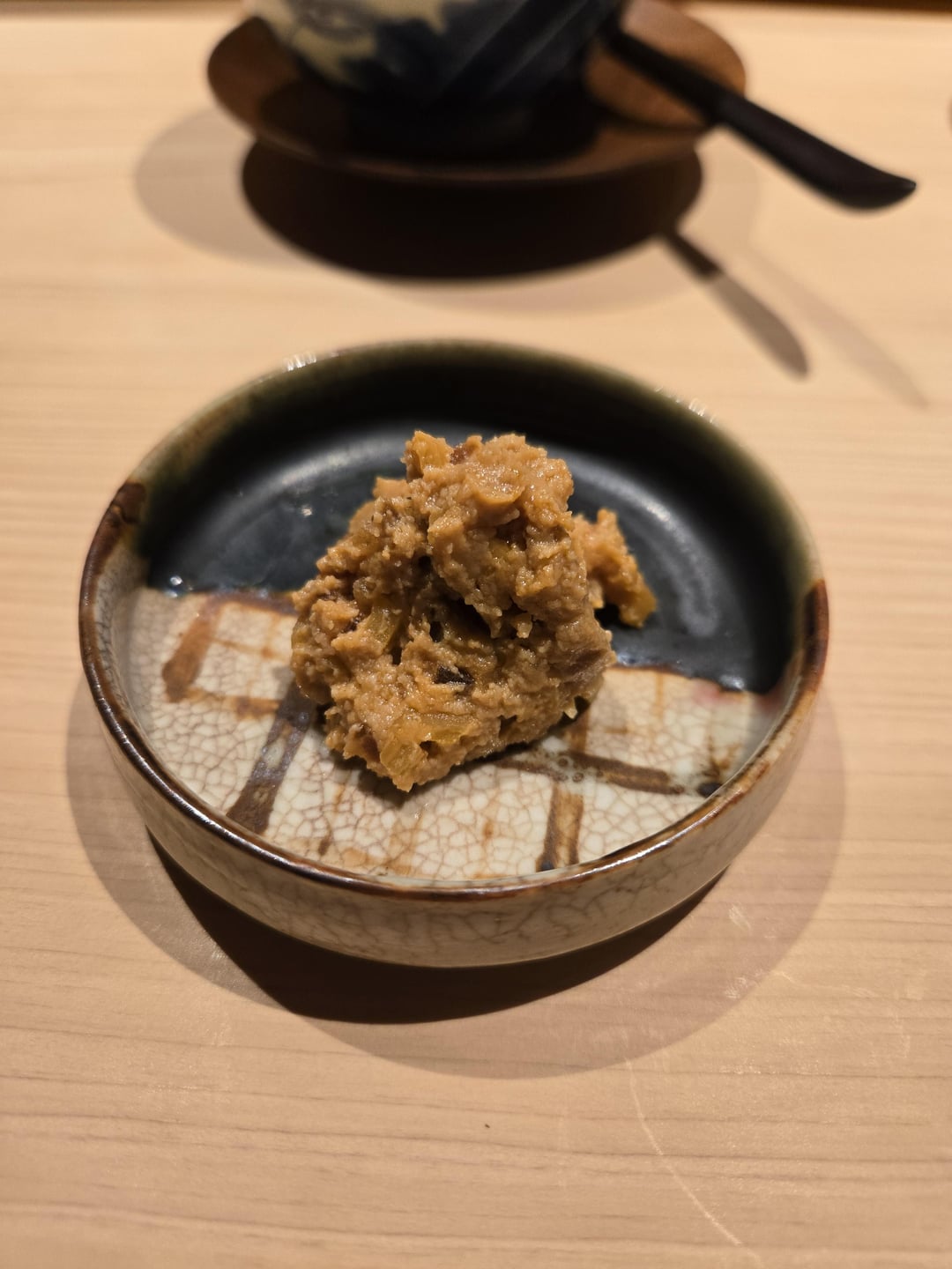 -ankimo takuan. Very salty. Might work if you nibbled on this throughout the meal between nigiris.