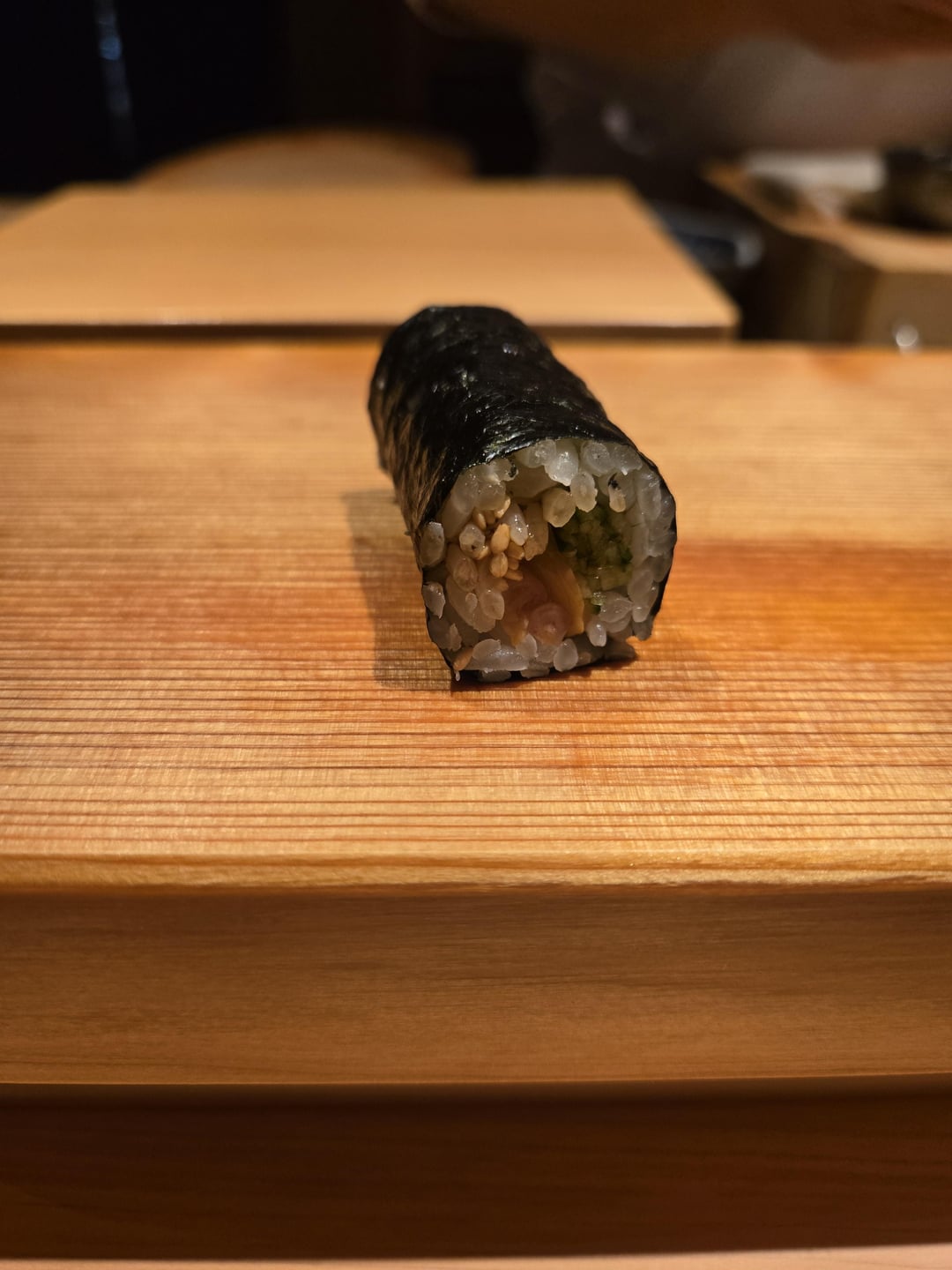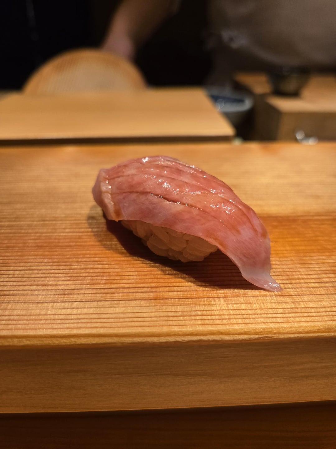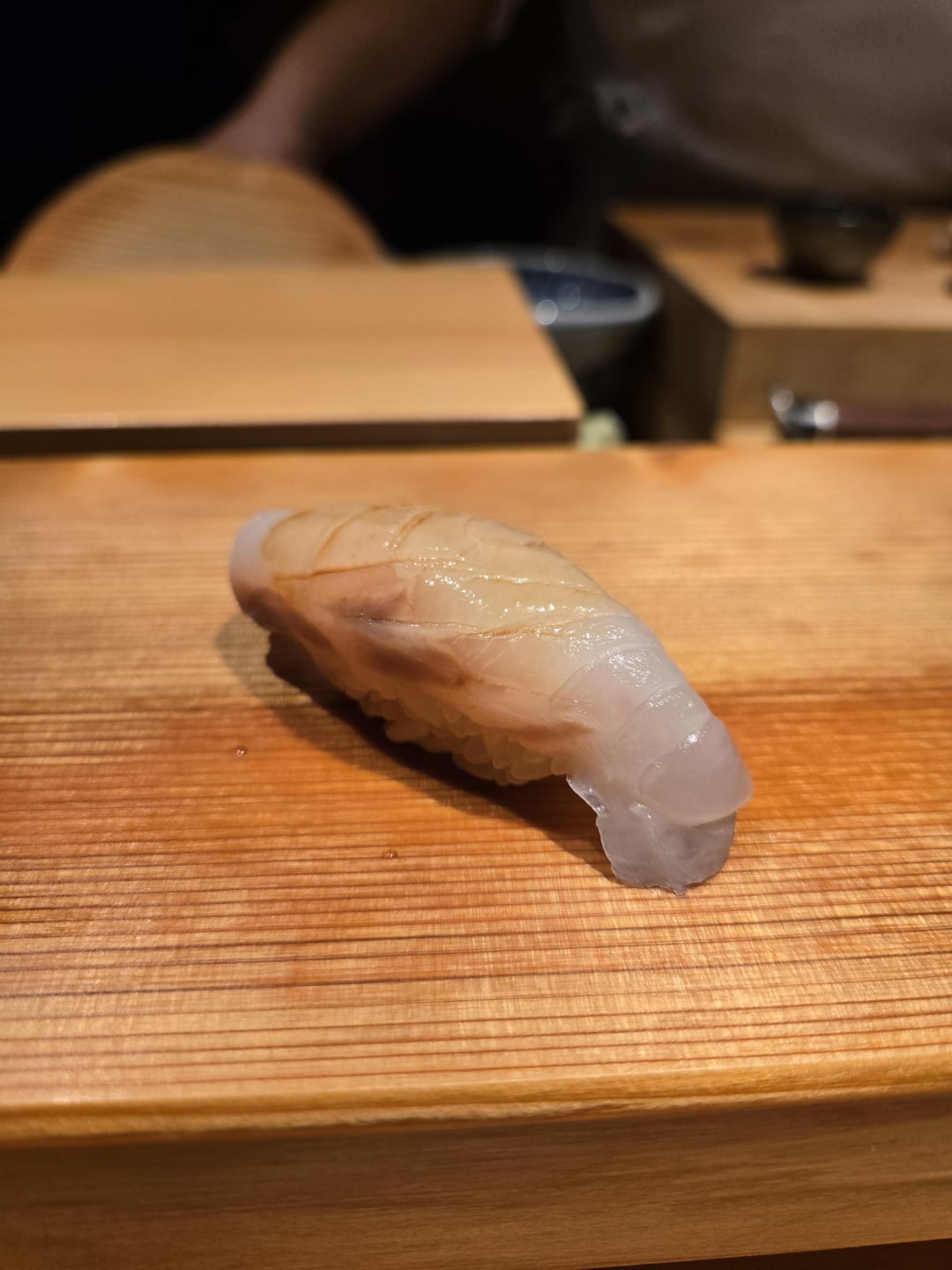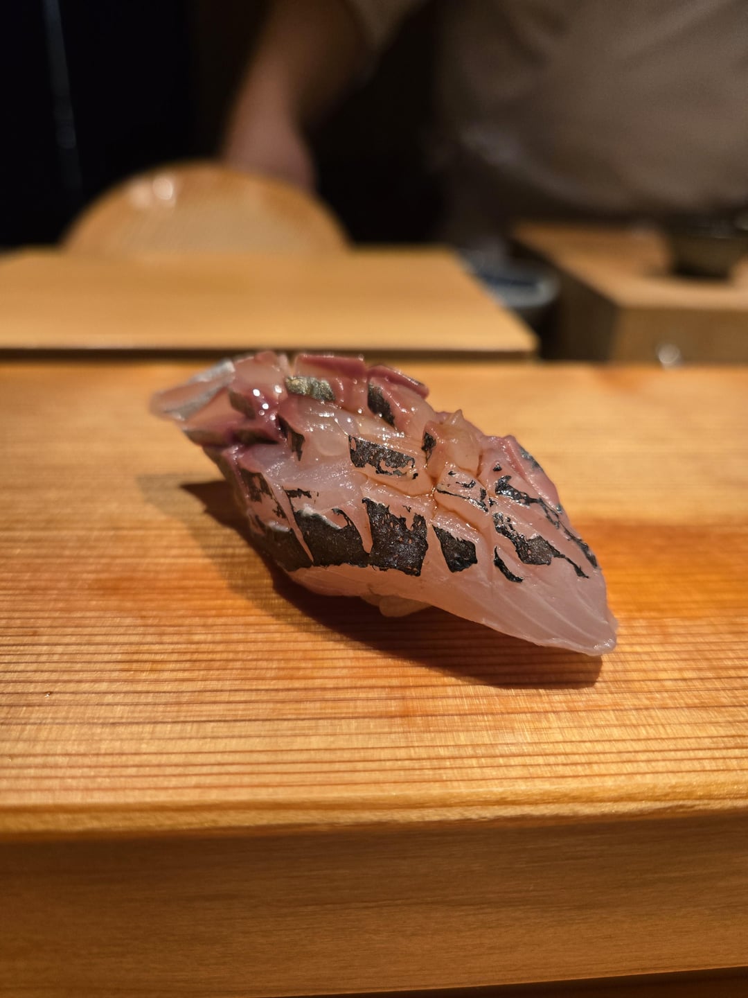 ~aji. Plump, meaty, fatty, but it was sliced very large so the taste from chewing became very overwhelming (didn't help I was slowly feeling full).