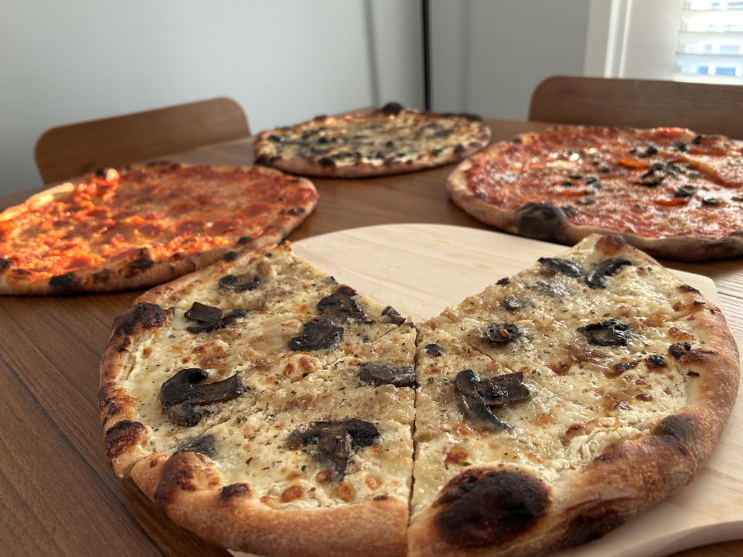 3 day fermentation. Made 2 White pies with mushrooms and caramelized onions topped with hot honey and oregano. And a couple of regular pepperoni pies…Getting it dialed in!