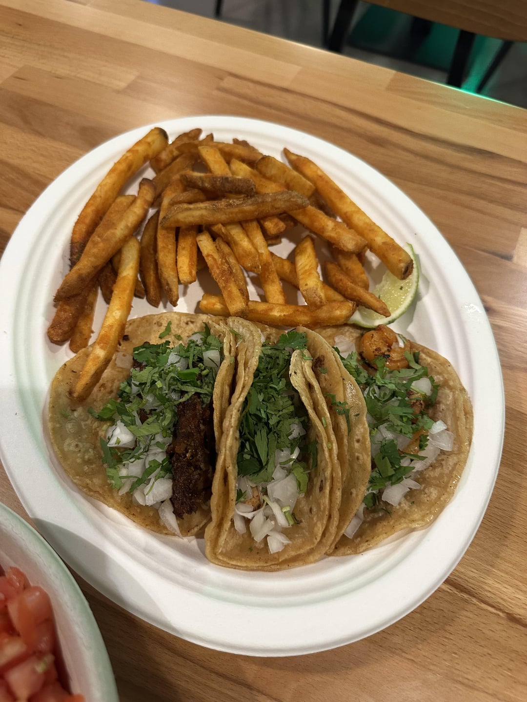 I got the 3 taco combo with fries and a drink, the steak protein bowl and chips and guac. For my tacos I got a shrimp, chicken and barbacoa taco. I think out of the three, the shrimp was the best. The shrimp was deveined and full of flavor. Not overcooked either which is a huge issue with shrimp tacos. The chicken was also good, pretty seasoned and juicy. My only issue is that it is cut too small, kept falling out. The barbacoa was the worse one and it still wasn’t bad. I probably wouldn’t get it again though. The fries were cool, I probably would get rice and beans next time.