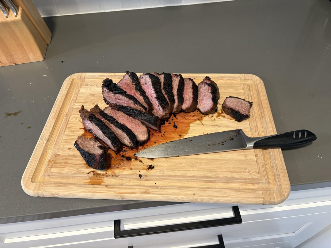 Gave a tri-tip my first try. I’m new to Denver and have realized smoking is a little different than Kansas City (temp/smoking time is higher/longer with other things I’ve smoked). Rubbed olive oil and Jack Stack steak rub on the tri-tip, set the Traeger at 250 and let the temp get to 108. I let it sit for about an hour in foil and inside a cooler then seared each side 15 then 5 minutes on a cast iron skillet on the stovetop on high. Got to about 150 degrees when I was intending on 135. Definitely screwed up the sear but also at the end it had no smoke flavor or other really any other typical tri-tip flavor. Looking for suggestions for next time.