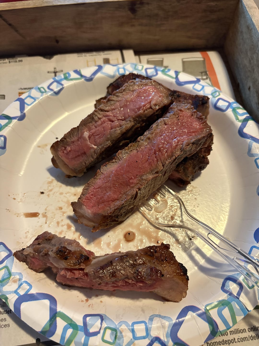 Looks good, would eat. It could be better, but definitely a worthy effort and probably better than many restaurants. I like to get mine cut a little thicker so I can reverse sear easier and get a really good crust. I highly recommend the Slow N Sear charcoal basket, grate, and drip pan. That and the Vortex are my MVPs of kettle accessories.
