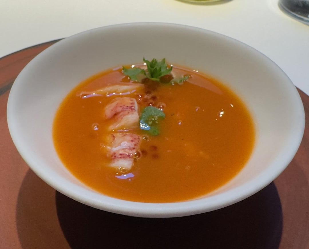 - Lobster and roe soup <–yum, nice spice and a hearty warm course. Lobster maybe a bit overcooked and didn't hit texture perfectly, but liked this a lot