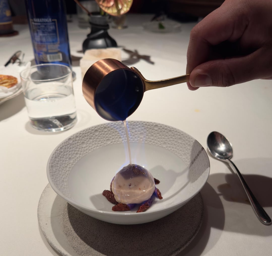 - Palate cleaner with a thickened/condensed cream was great to transition to dessert