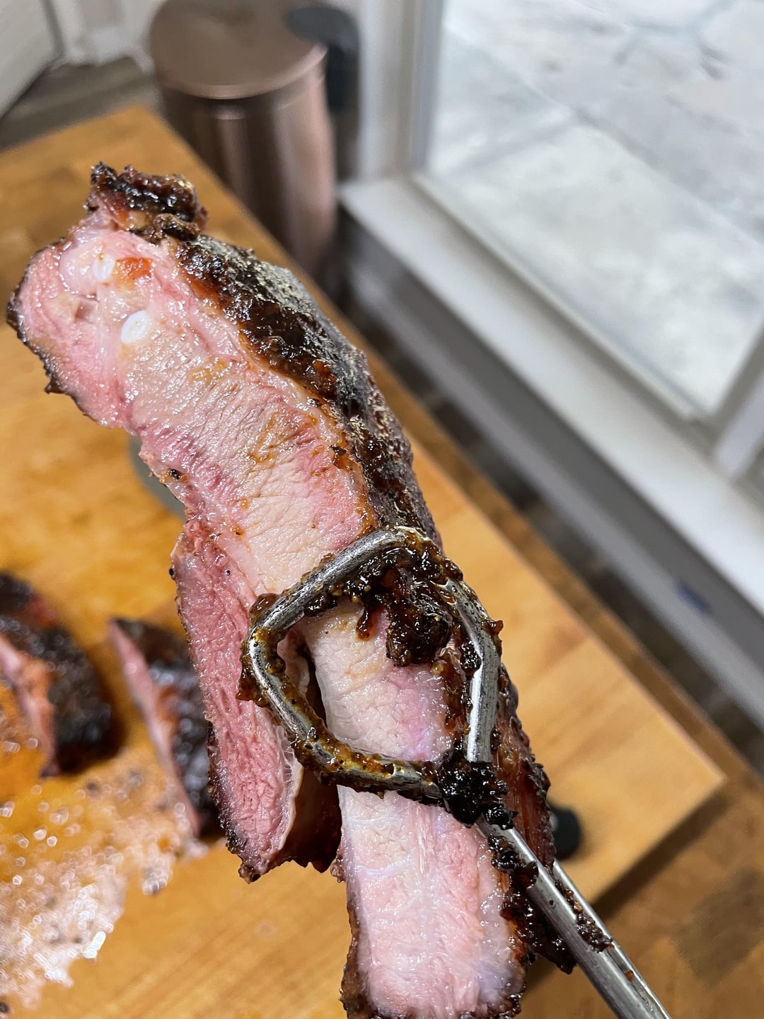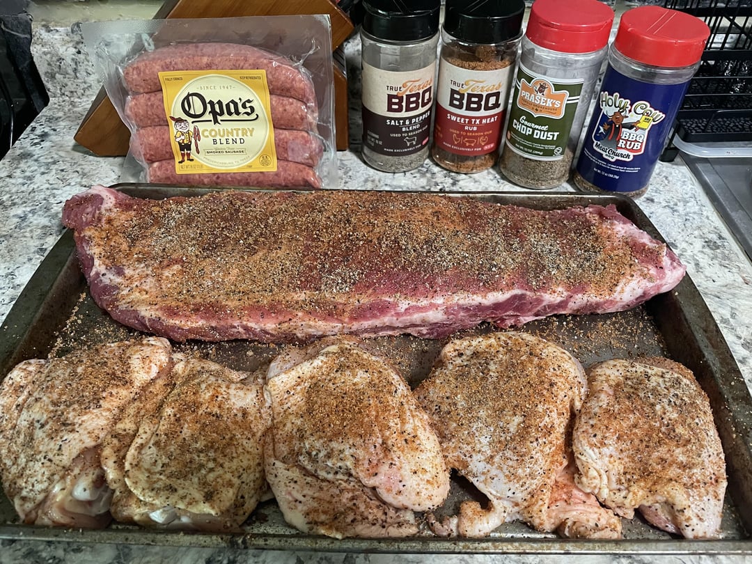6 hrs, no wrap, but I did use a homemade “sop”/mopping sauce (also pictured). Used a mix of rubs (pictured on the raw meat photo). Pecan and mesquite mix.