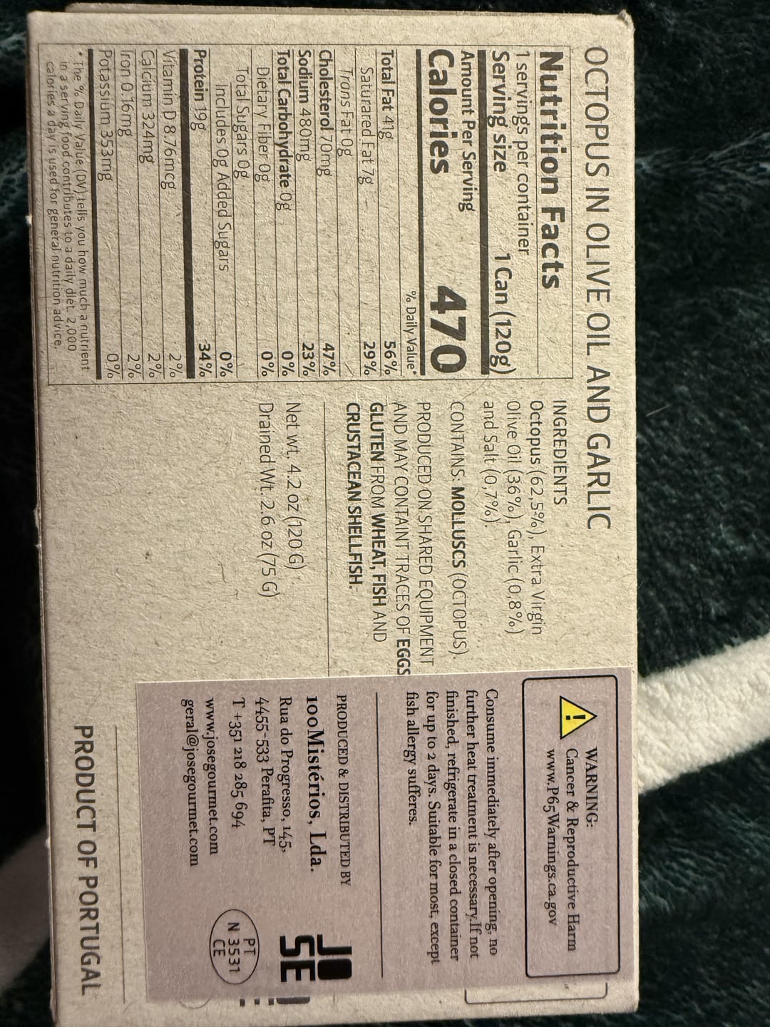 i just compared them to my sardines i eat several xs a wk and not much diff. flower brand moroccan spiced =olive oil fish a carrot a bay leaf a chili pepper salt and peppercorn and cloves= 310 cal 60 mg cholesterol 500 mg sodium 29 g protein. i mean i see a difference but unless your eating them for every meal every day or building muscle super human type muscles one can is meaningless. its a muscle not a fish or mammal i’m not very book smart but theres not much there so not much protein i don’t no why so many calories? anyway they are way to cool and smart to eat, what do they taste like? i don’t think id like the texture to slippery although it does sound kind of hot