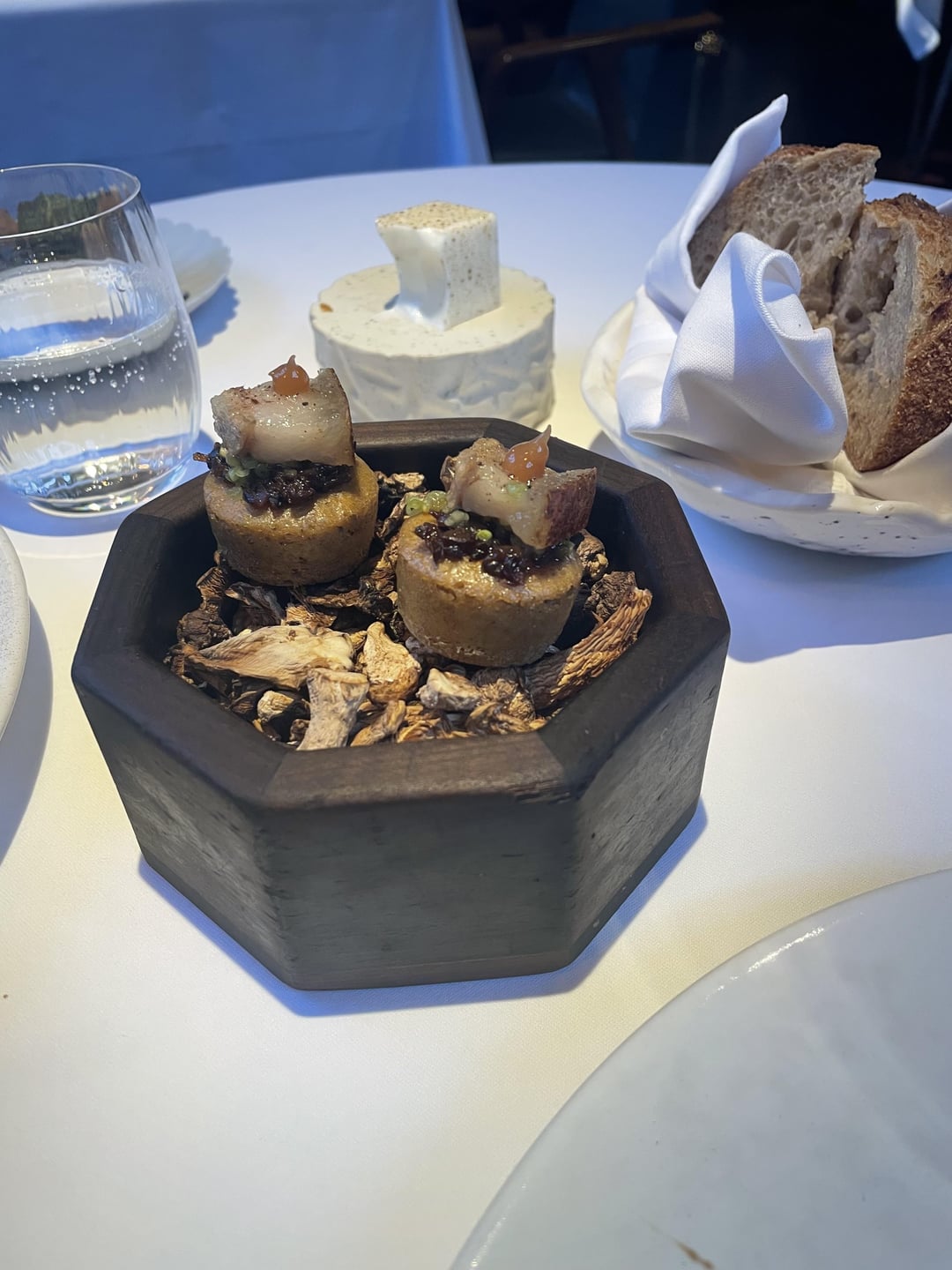 The food was delicious and the menu covered a great range of flavors, I was never bored over the 3.5 hours we were there. The personal highlights for me were the prawns (not pictured), the mushrooms from the cabinet, and the savory pastry roll (side, not one of the courses). We did not do the wine pairing but the selection was extensive and I enjoyed a wonderful Malbec.