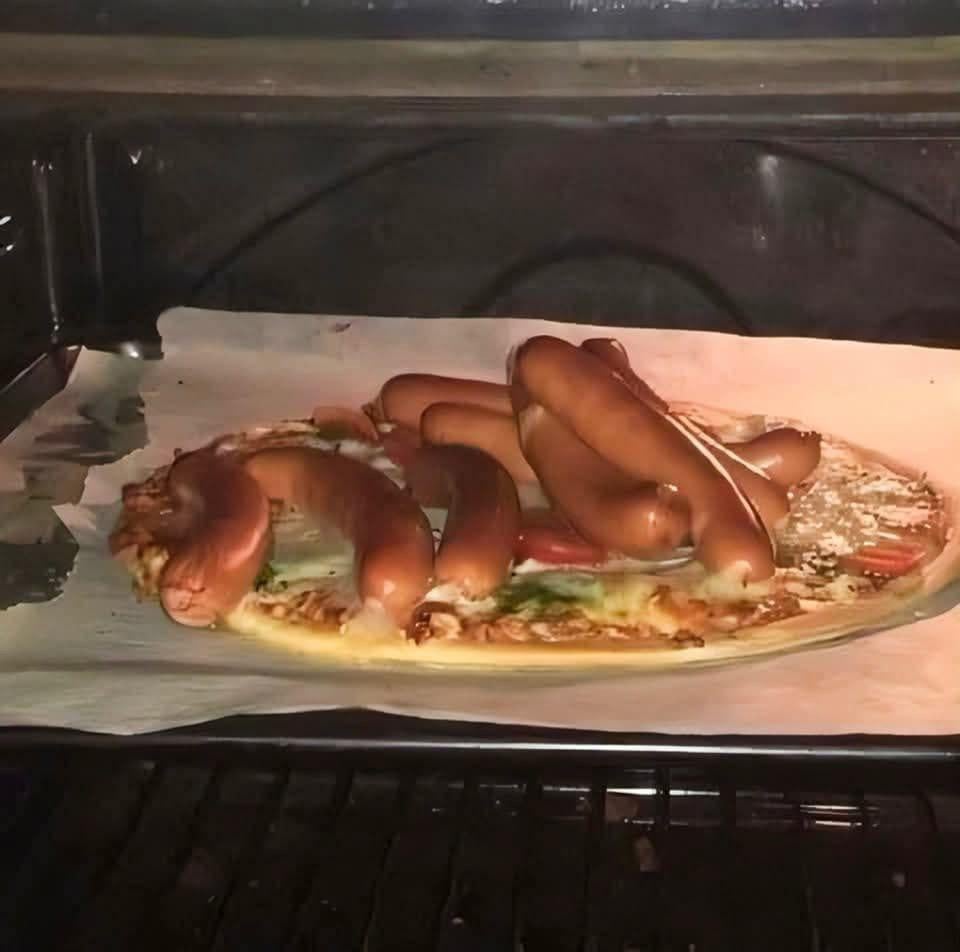 my friend made pizza and just threw the whole sausage on top… didn’t even bother to slice it lol!