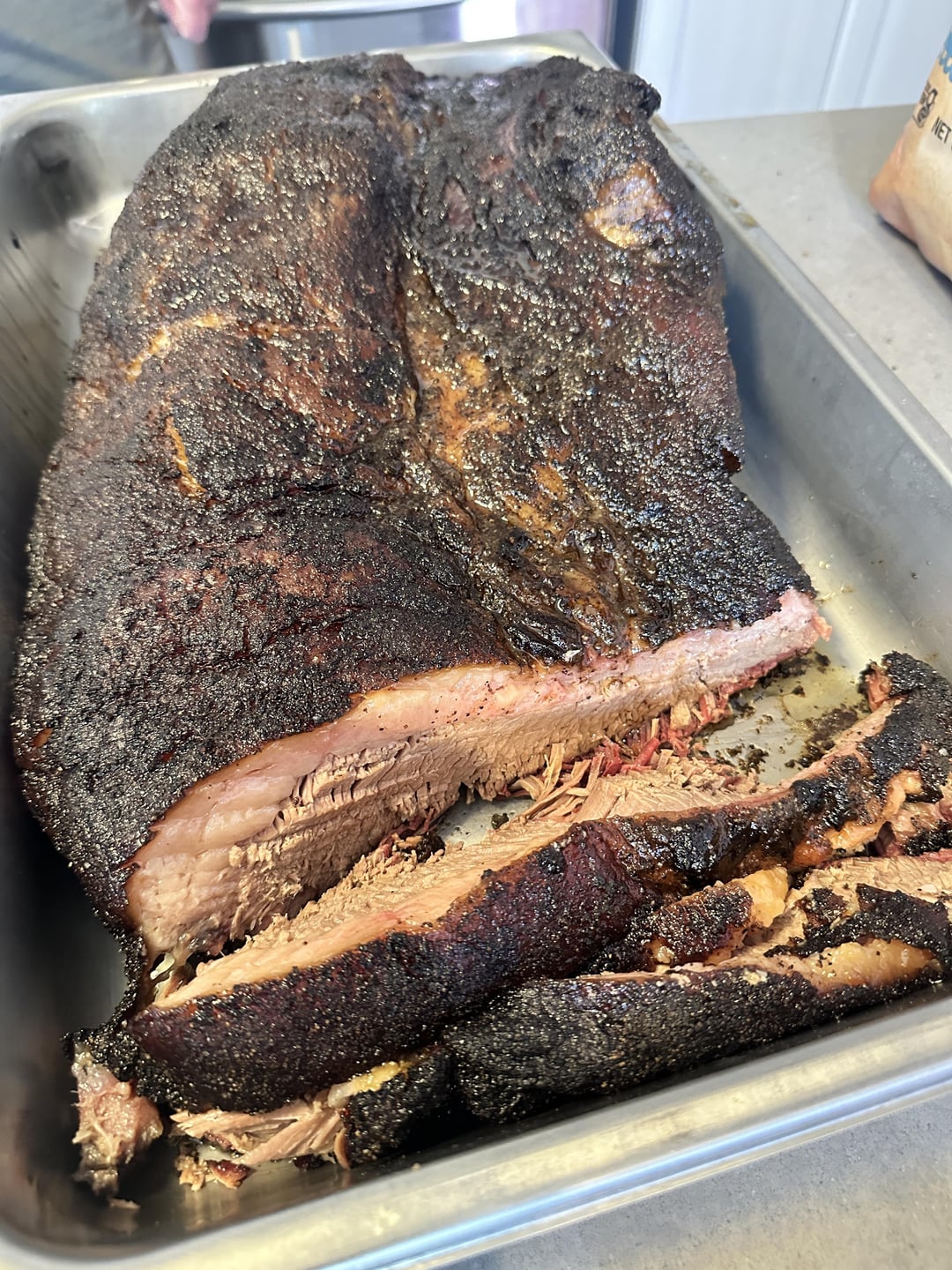 Not a pro but I smoke my brisket till 200-205. Then let rest for an hour in a cooler with towels around it while still in pink butchers paper. I use pink butchers paper for the crutch instead of foil. Mine has been juicy fall apart every time. Good first go at it. I’m sure it tastes great