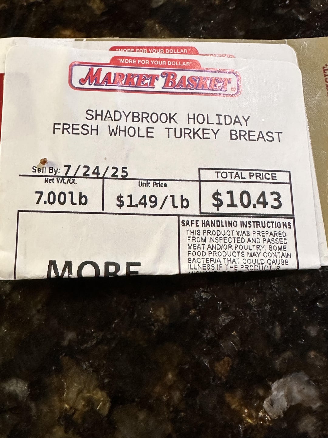 Yeah for me that’d be “turkey breast to eat over the course of an hour”