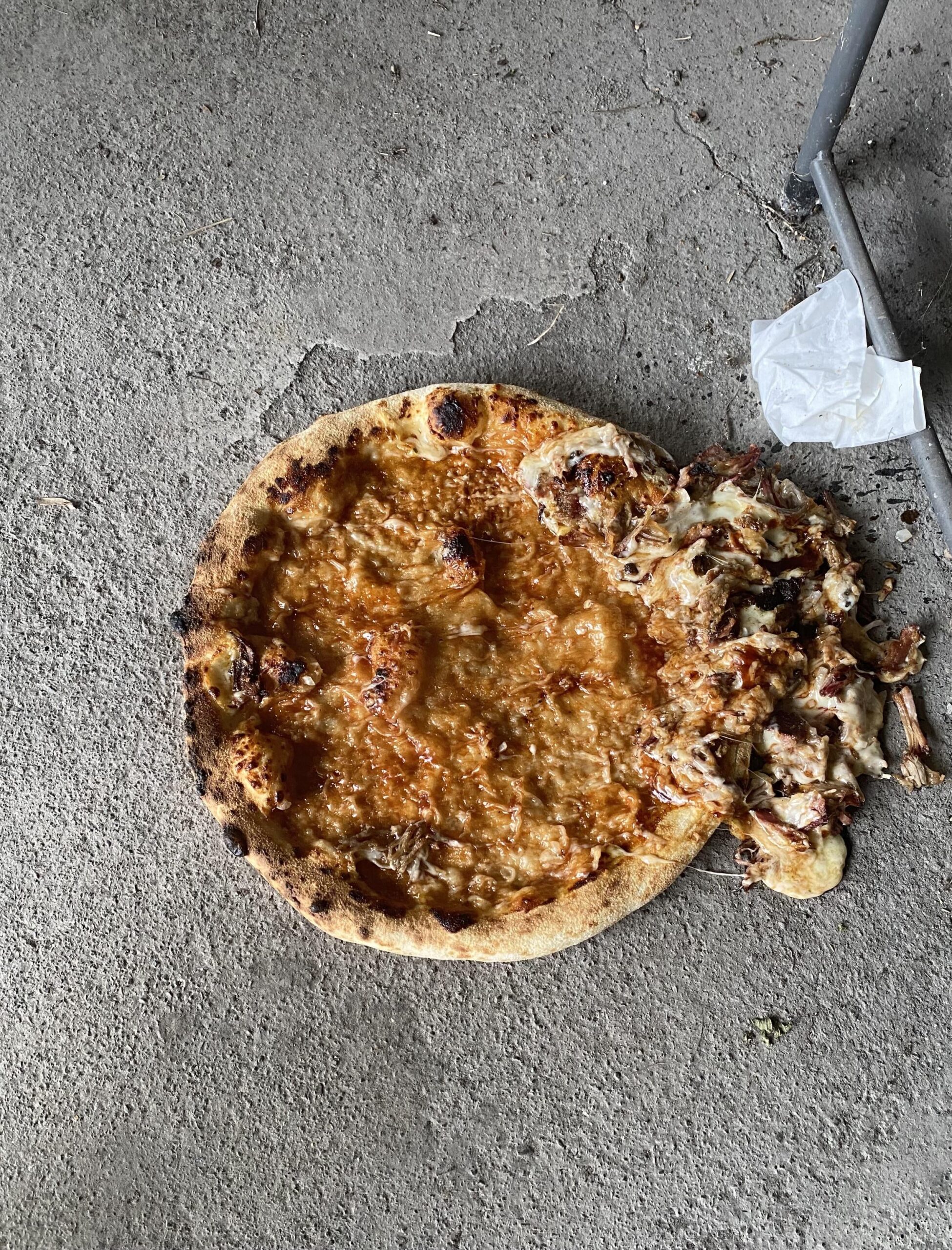 I smoked a pork butt yesterday and decided I’d make a BBQ pizza with some of it in the outdoor oven. Being clumsy cost me dearly. I’m ready for my arraignment.