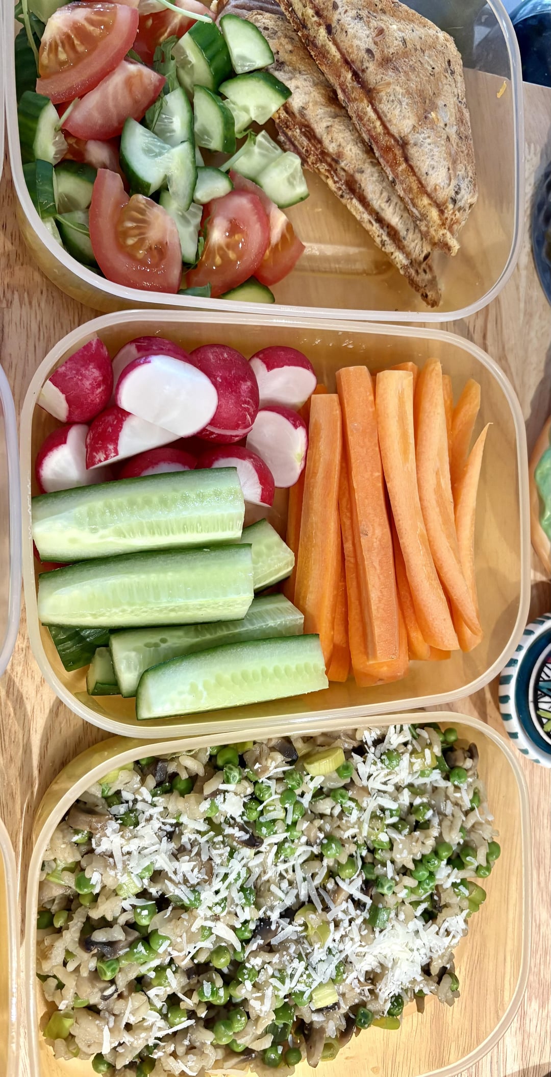 snack: carrots, raddishes and cucumber.