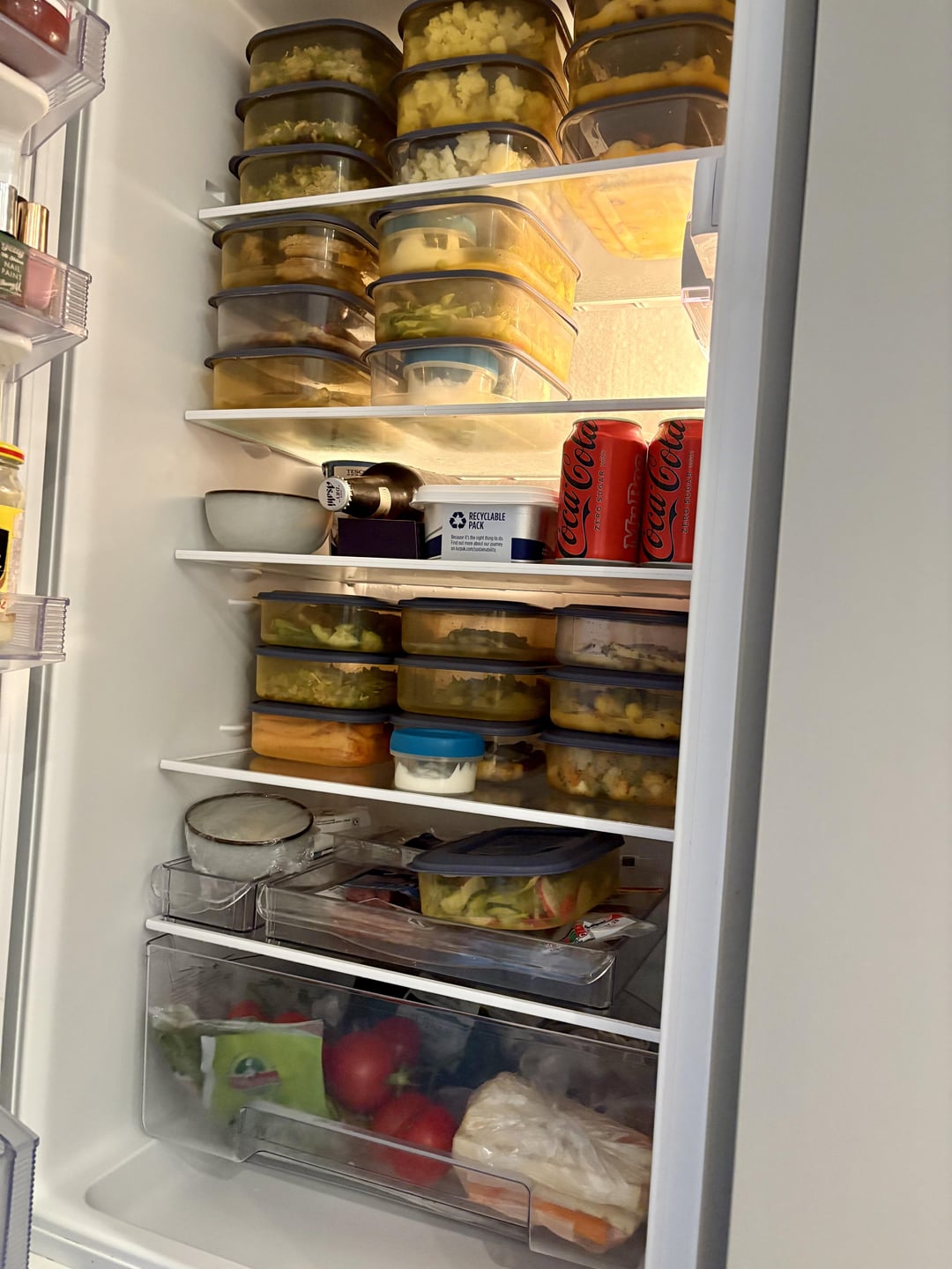 lunch: mashed potatoes with chicken drumstick (husband: wings) and a salad (greek yoghurt, cucumber, raddish, rocket salad, spring onions).