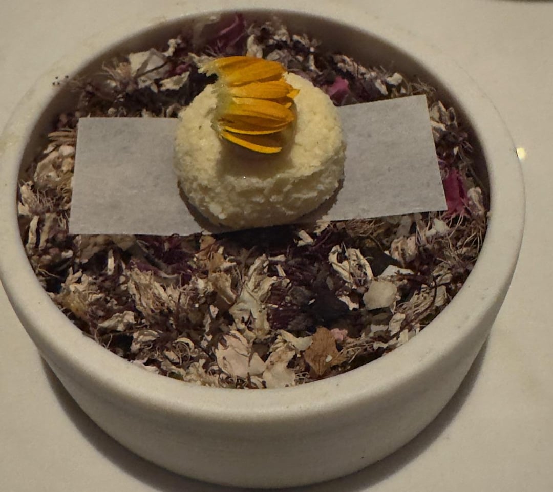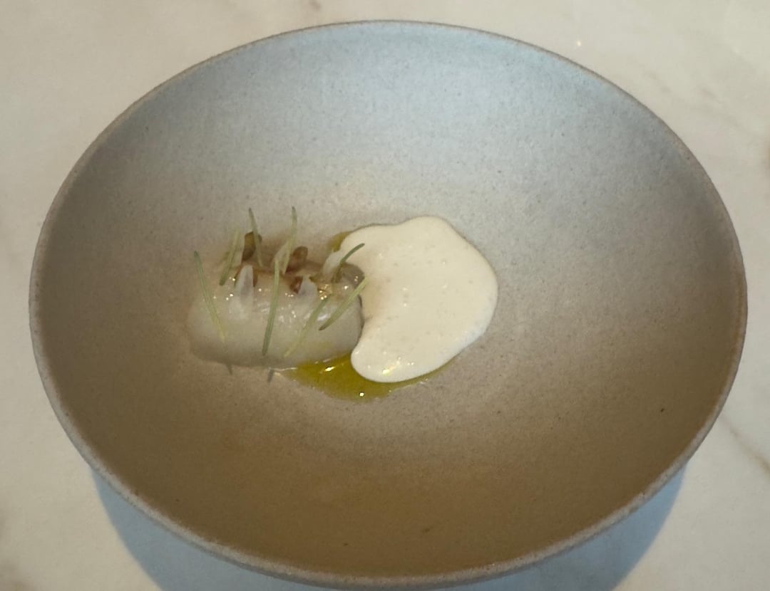 - halibut, fermented root veggies, was one of the nicest bites and very well balanced