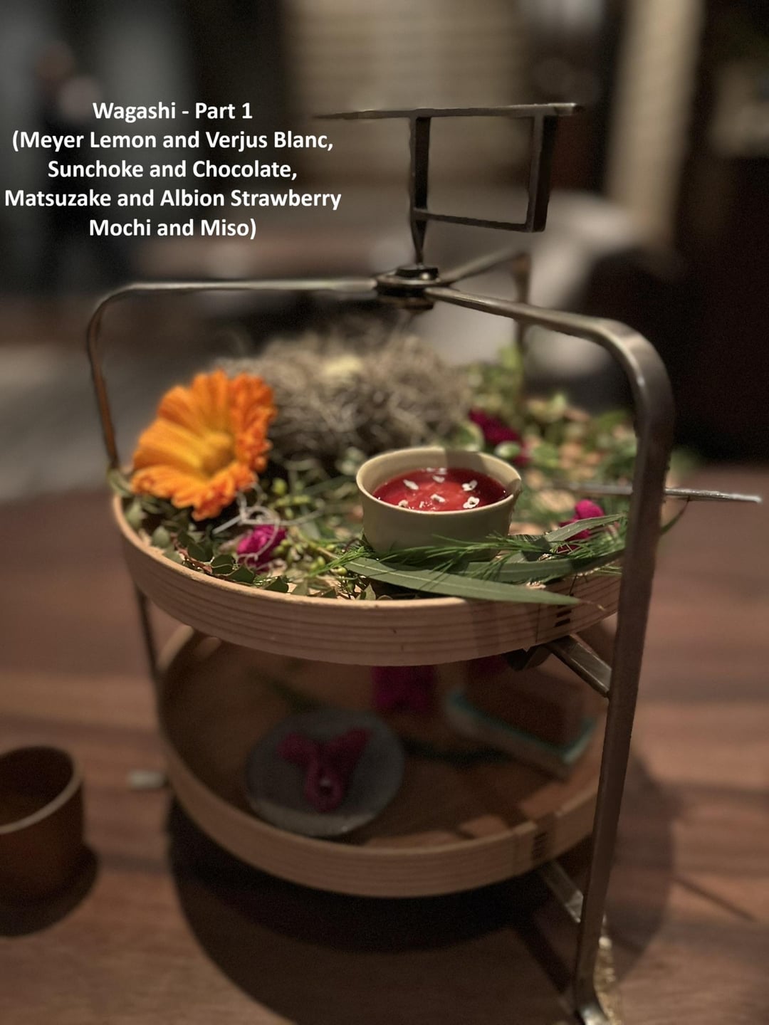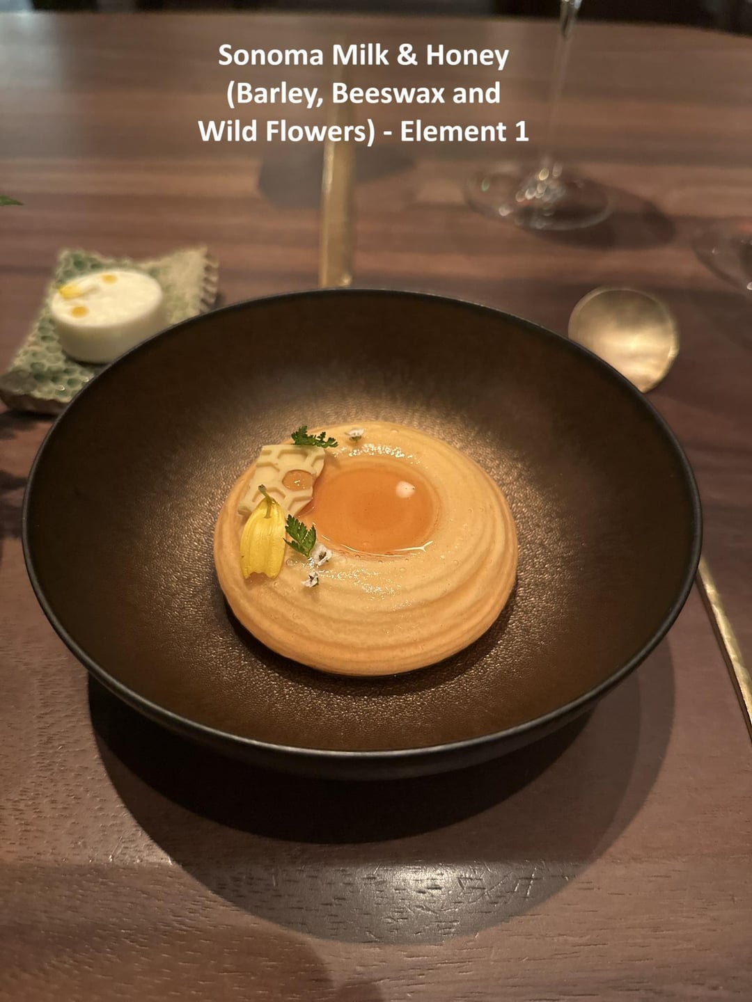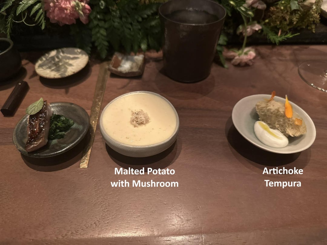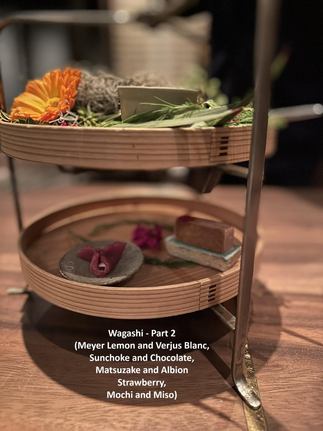 1) Mid Spring in Sonoma – The aforementioned elaborate arrangement of first bites. If you take nothing else away from your meal here, this course is sure to stick with you for a long time. A total of 12 different bites (!) accompanied by three more hearty dishes right after, a great way to shock one’s senses straight after taking a seat. It is a course featuring plenty of raw seafood, raw veg, acid and textures, all well executed. The highlights for me among these included a black sesame tofu, a nori cracker with caviar and veg broth, the malted potato and the last piece of grilled fish. If the rest of the menu feels short in pictures, it’s because this arrangement packs so much into one course.