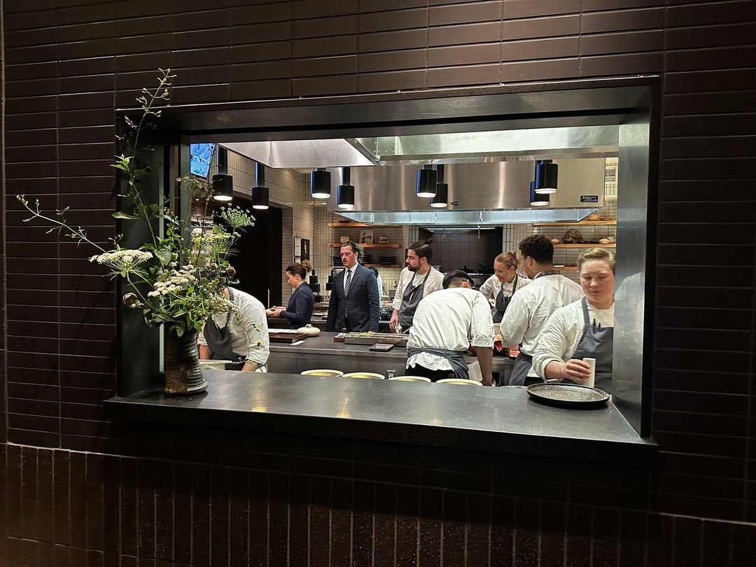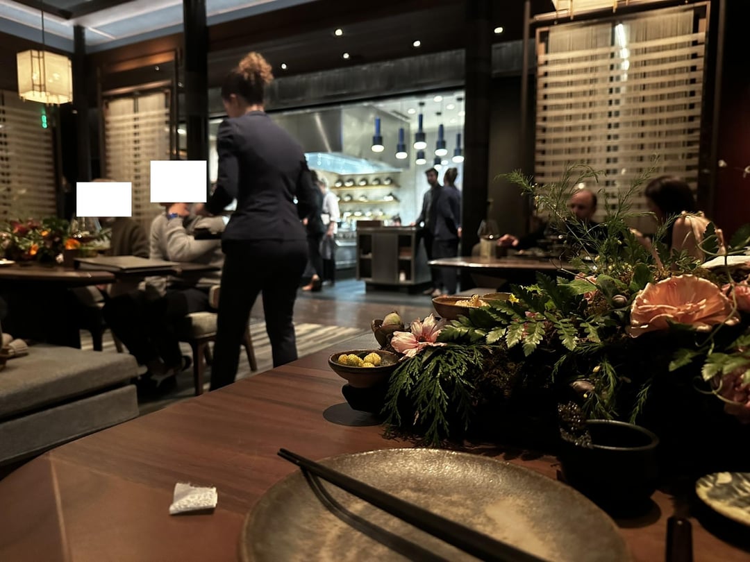 One of the hosts then led me to my table. The main dining room is bright and inviting with wooden accents all around and instrumental music playing in the background that collectively led me to loosen my shoulders and anticipate a relaxed evening. Where Addison’s space felt imposing and quiet, the atmosphere here felt a lot more open and vibrant. My table was located in a nice spot on one side of the dining room that was both people-watching-friendly and had a really nice view of the open kitchen. As I’ve found to be the case at other high starred restaurants, I imagine this is one of their designated spots for solo diners – one that gives your eyes multiple “options” to study or zone out on in between courses.
