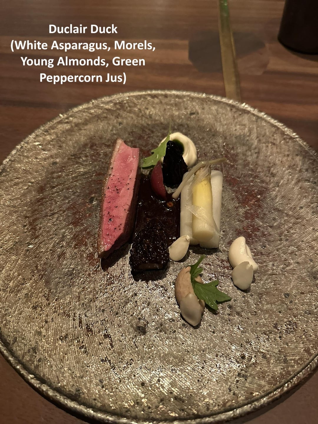 5) Duclair Duck – Perfectly cooked duck with crispy skin, perfect sauce, three different purees, herb oil, stuffed morel mushroom. One of the best renditions of a duck entrée I’ve come across. Yet the most memorable elements for me were the poached asparagus and the almonds. Another example where the veg on the plate turns out to be the unsung hero.